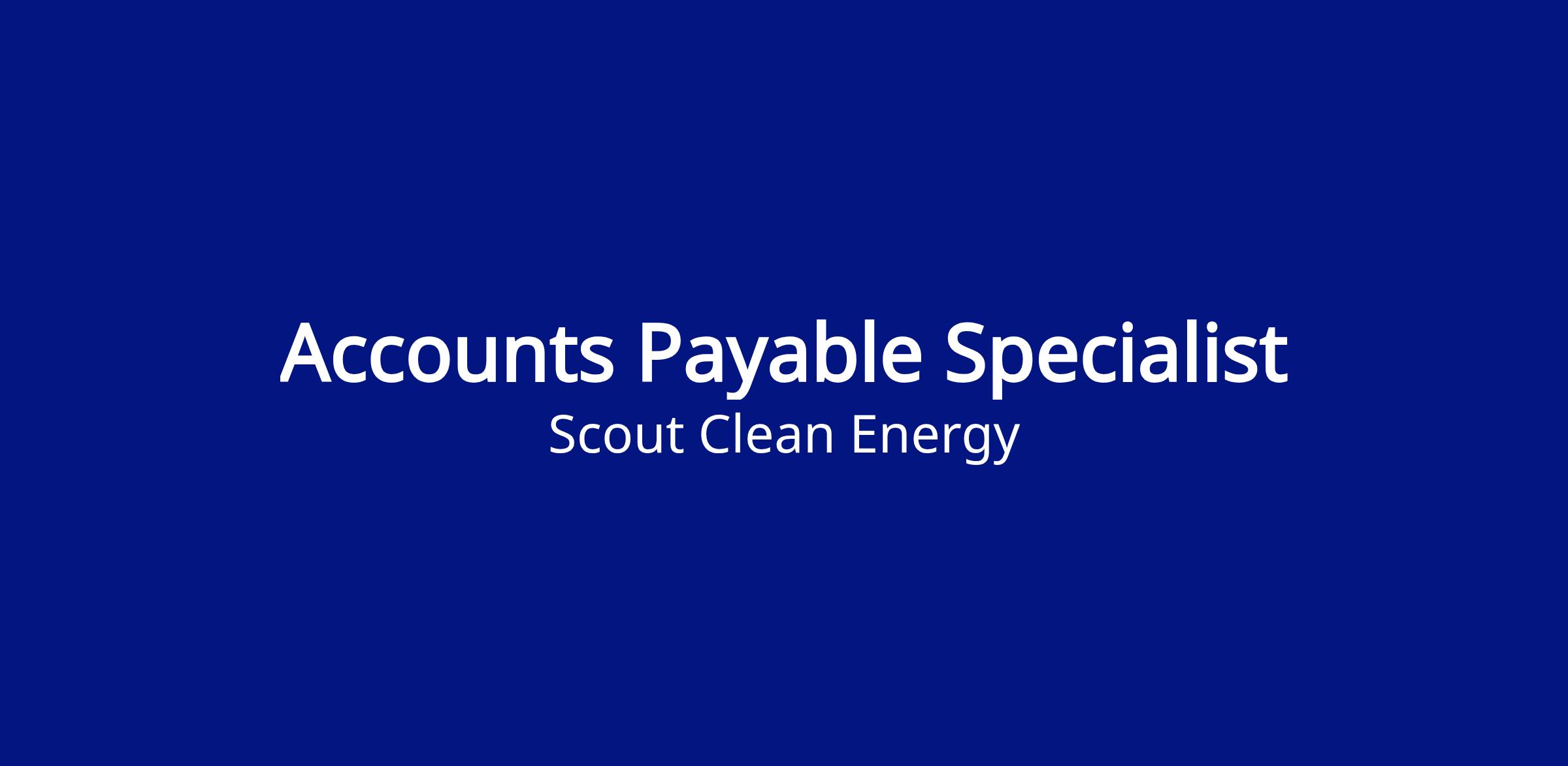 As an Accounts Payable Specialist with Scout Clean Energy, you will play an integral role in building a tightly knit and highly productive team. You will be responsible for managing purchase orders, processing invoices, mailing checks, interfacing with vendors, and completing a variety of accounting tasks on firm timelines. Throughout the day, you will interface with the Accounting team as well as other departments to ensure all responsibilities are completed accurately and on schedule. You will be supervised in your day-to-day work by the AP Team Lead, while your formal reporting manager will be the VP of Corporate Finance Accounting.