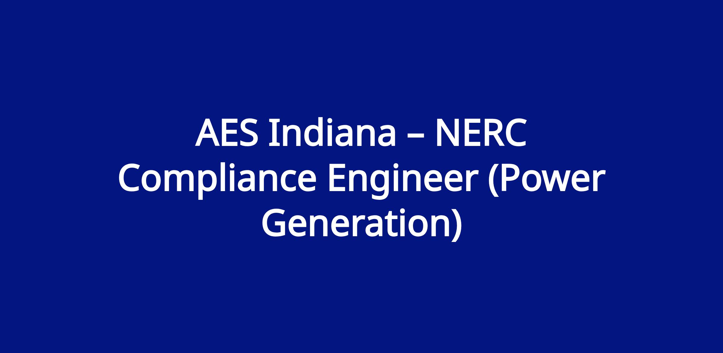 AES Indiana – NERC Compliance Engineer (Power Generation)