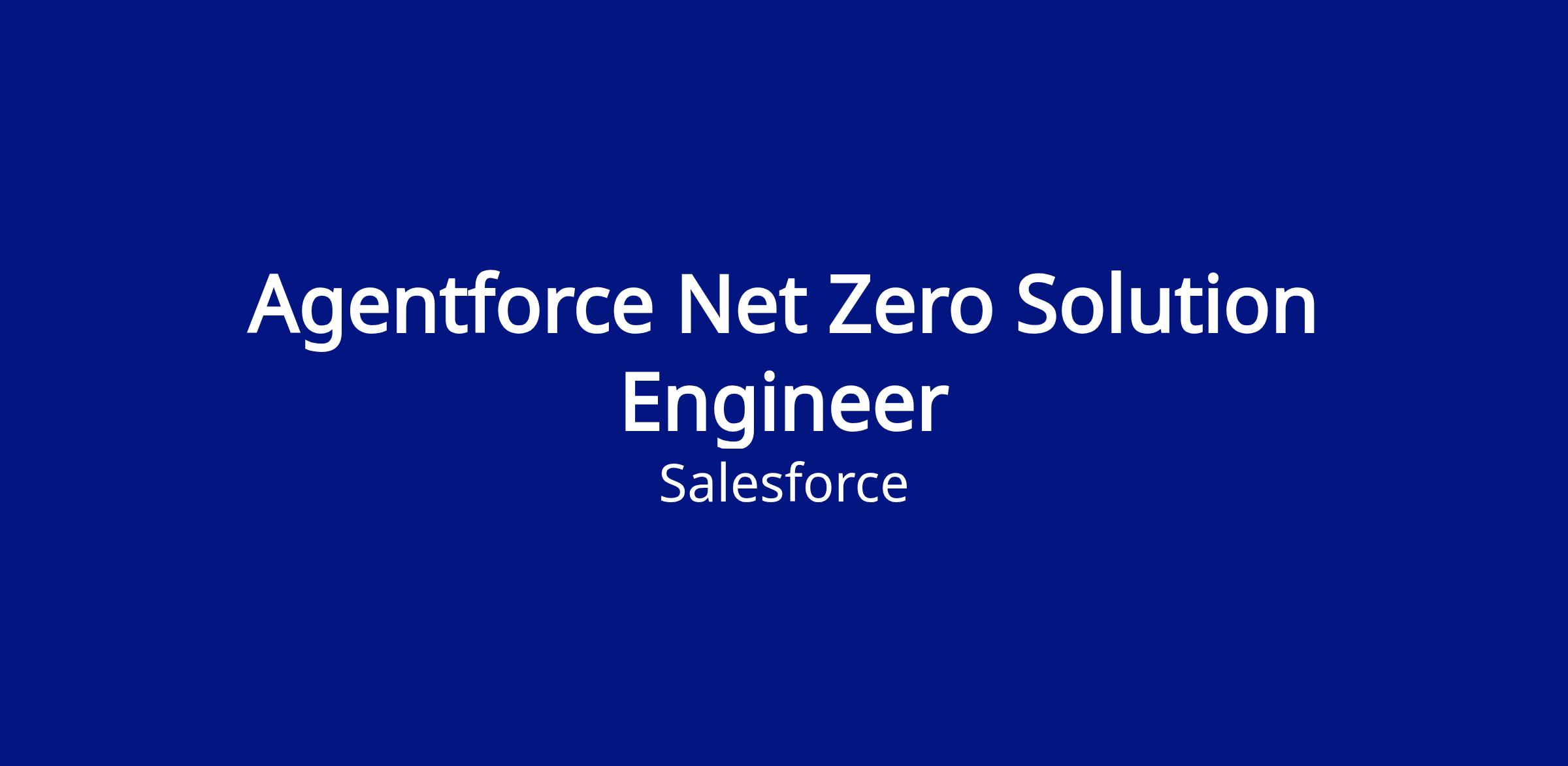 Applications will be accepted until 02/19/2026.The Agentforce Net Zero Solution Engineer is a trusted technical advisor and sustainability champion with deep expertise in Agentforce Net Zero, Salesforce’s industry-leading ESG and carbon accounting solution. In this role, you will help organizations measure, manage, and report on sustainability data—turning insight into action at scale.