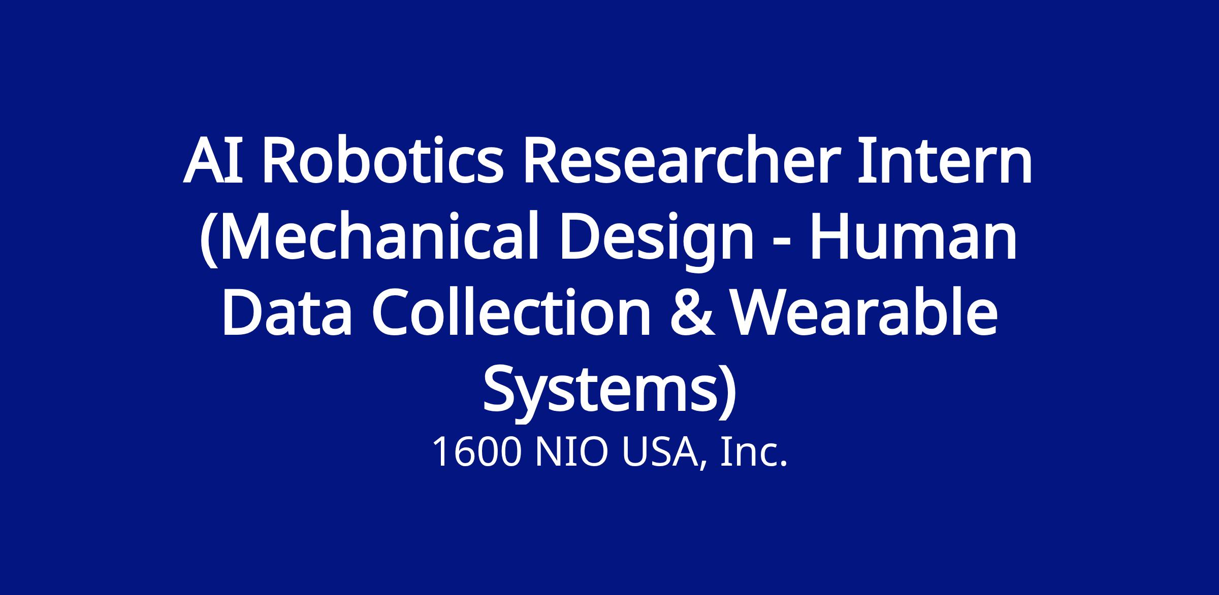 We are seeking a Mechanical Design Intern to join the team at NIO to contribute to the development of our next-generation tactile-sensing hand gloves. This role is a vital part of our embodied AI initiatives, focusing on creating the hardware necessary to capture high-fidelity contact and motion data for generalist robotic training.