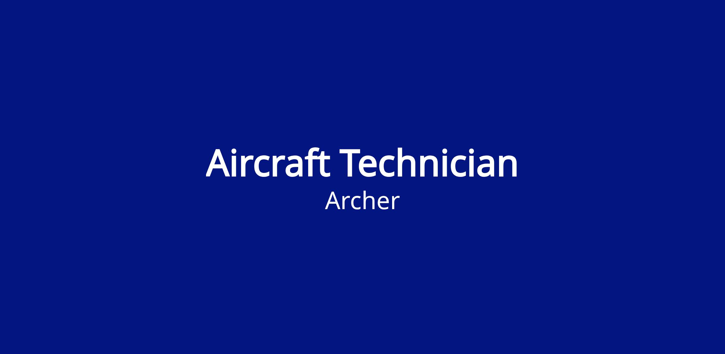 Archer Aviation does not engage with external recruiting agencies/individual recruiters with whom it does not have a prior written agreement. Archer reserves the right to make use of any unsolicited resumes that it receives and bears no responsibility for payment of any fees asserted from the use of unsolicited resumes. If you are a recruiting agency or individual recruiter wishing to do business with Archer, please reach out to People@archer.com. All employment processes are managed by the Archer People Team.