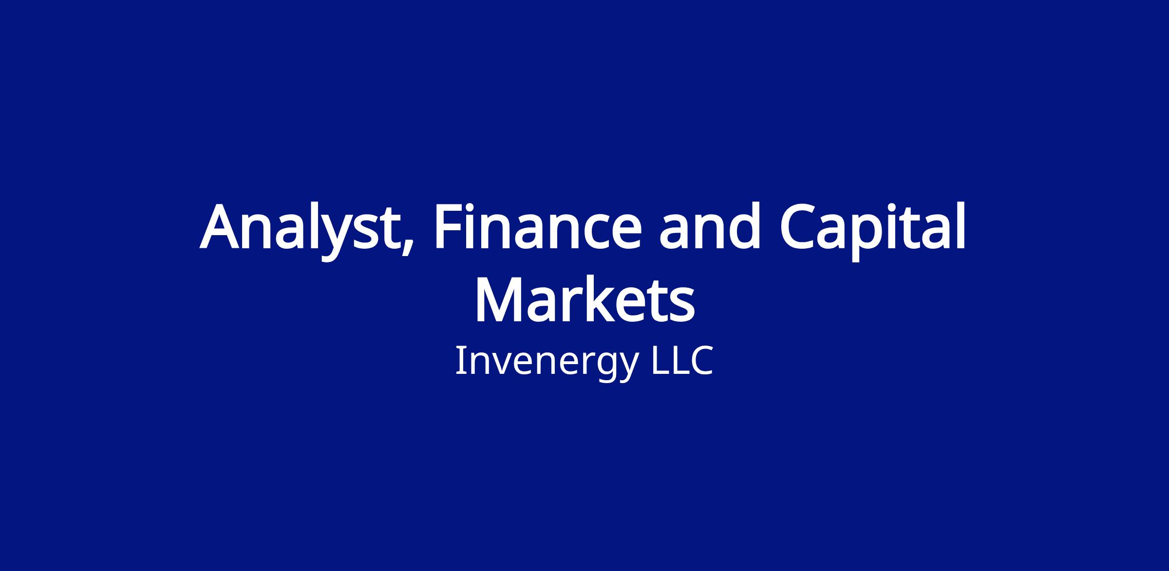 As an Analyst, Finance and Capital Markets, you will support creating and updating complex financial models, transaction closings/fundings, and compliance with covenants in finance documents. You will work closely with other Invenergy teams including Thermal and Renewable Development, Asset Management, Legal, and Accounting, as well as external stakeholders. This position is located at our headquarters in Chicago, Illinois.