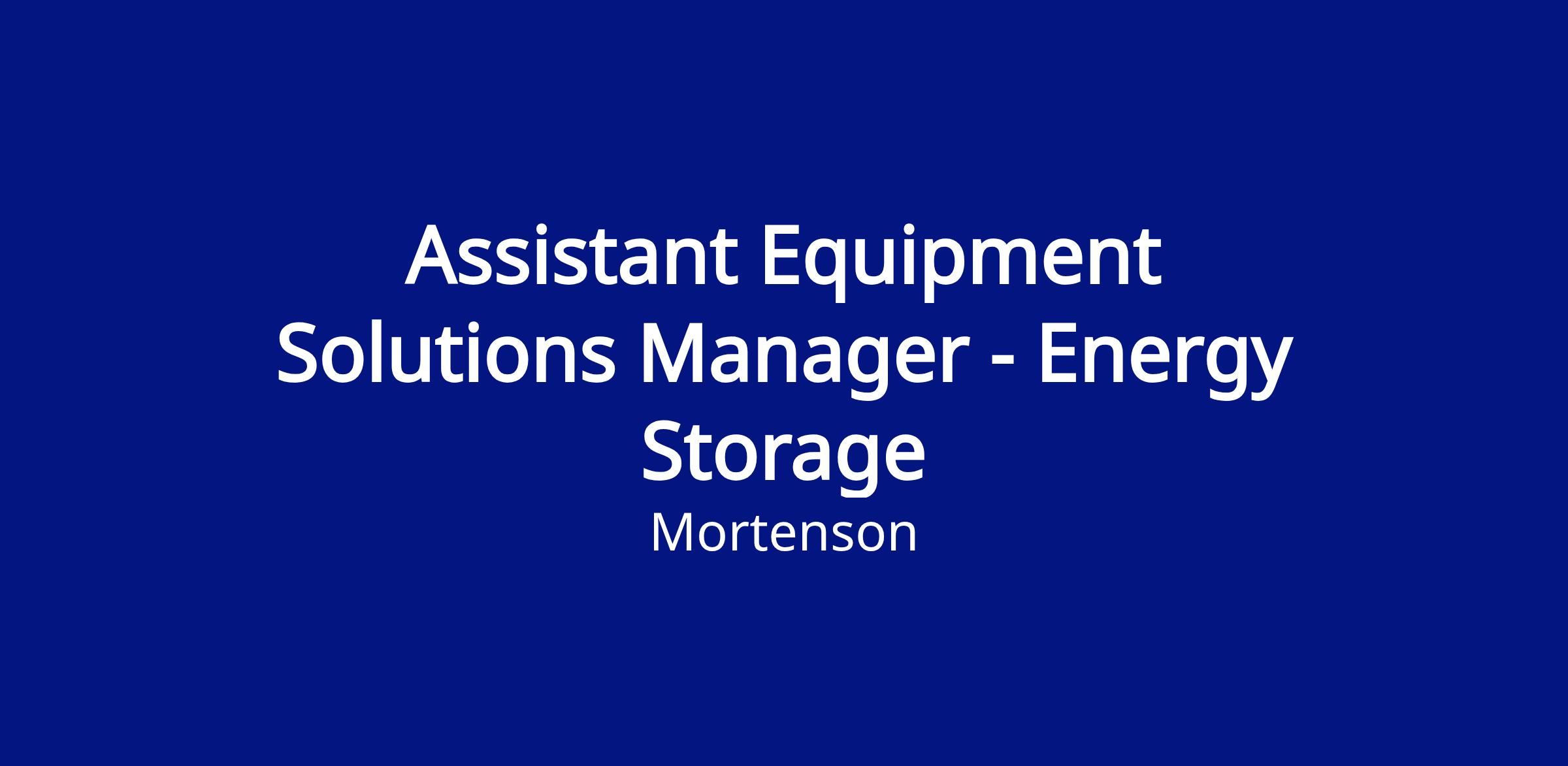 Mortenson is hiring an Assistant Equipment Solutions Manager-Energy Storage supporting our growing Energy Storage group. This role partners with other Equipment Solutions Managers to provide leadership and project assistance.