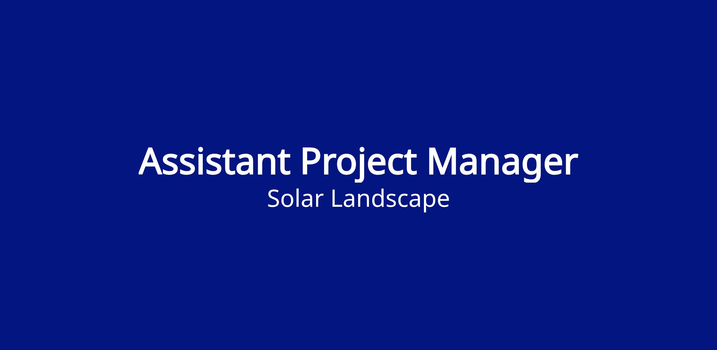 We are currently seeking an Assistant Project Manager to support the successful execution of solar projects. The Assistant Project Manager will work closely with the Project Management team and be responsible for assisting with all aspects of project delivery, including project planning, budgeting, procurement, construction management, project controls and reporting, scheduling, and risk management.