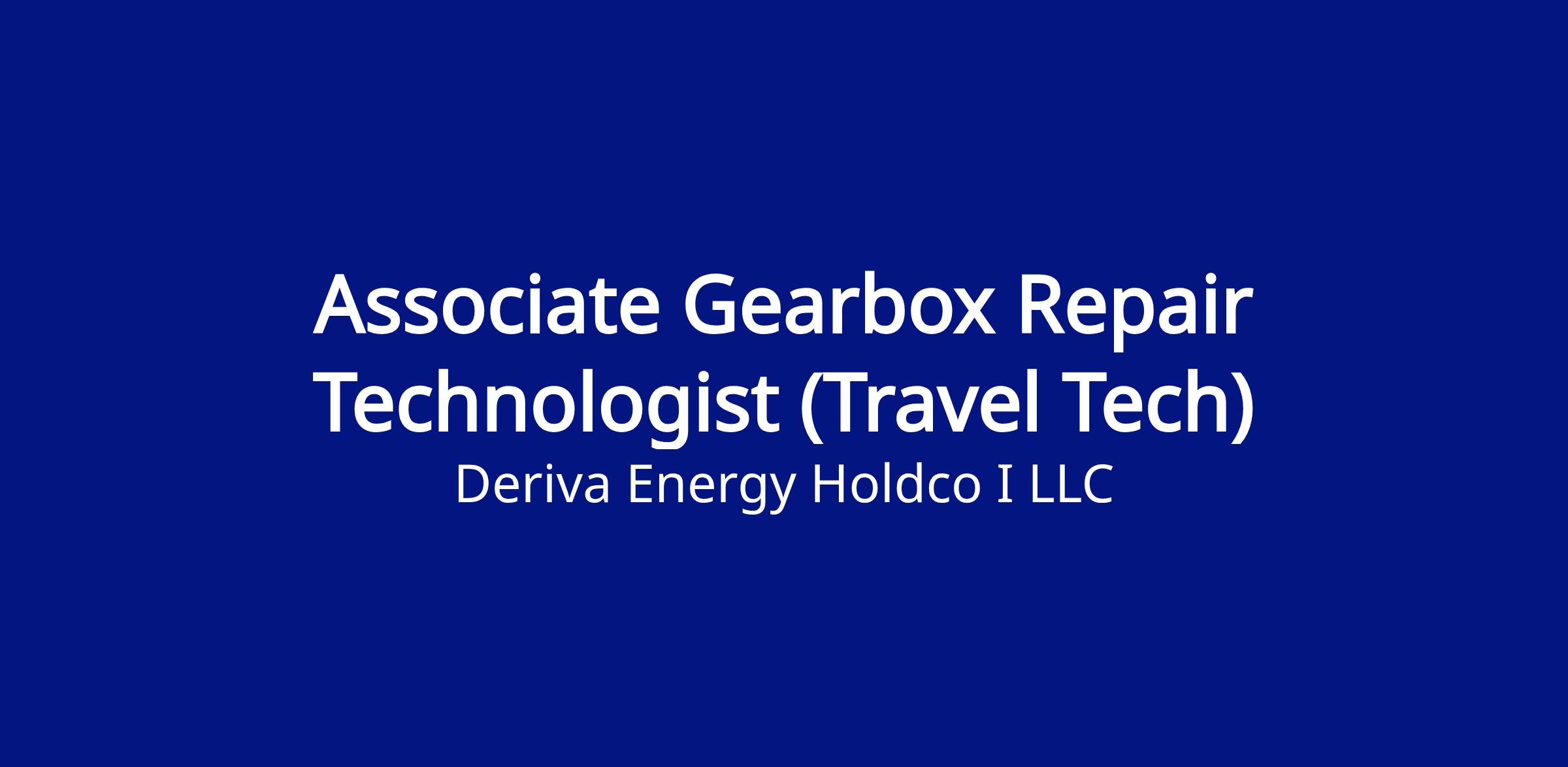 Deriva Energy is seeking an Associate Technologist, Renewables. This is both the entry level and initial training level for the Gearbox Repair team. This training level is intended to train for the less difficult (technical) work. Trainees, under close supervision and in accordance with established safety and technical procedures, learn and perform increasingly difficult duties of a semi-technical nature in a specialized program. When incumbents become proficient in their duties, they work under general supervision and guidelines performing routine tasks and assist higher level technicians more complex and difficult tasks. A Level 1 will have received the initial DRA training and will have completed the core concepts knowledge requirement. A Level 1 will be teamed up with a Level 2, 3, or 4. Employees at this level will receive instruction and oversight as new or unusual situations arise while they become more familiar with operating procedures and policies.