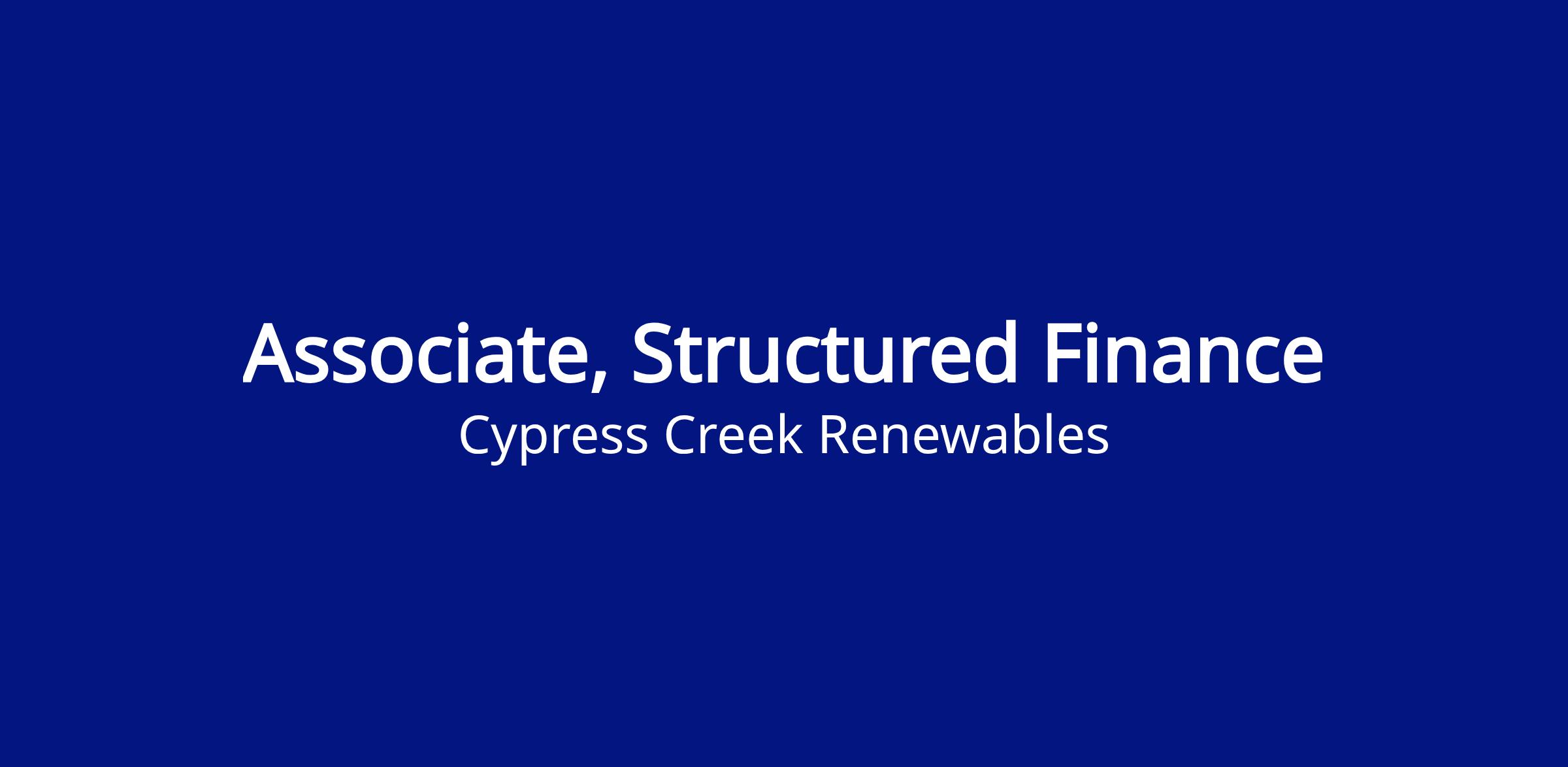 Associate, Structured Finance