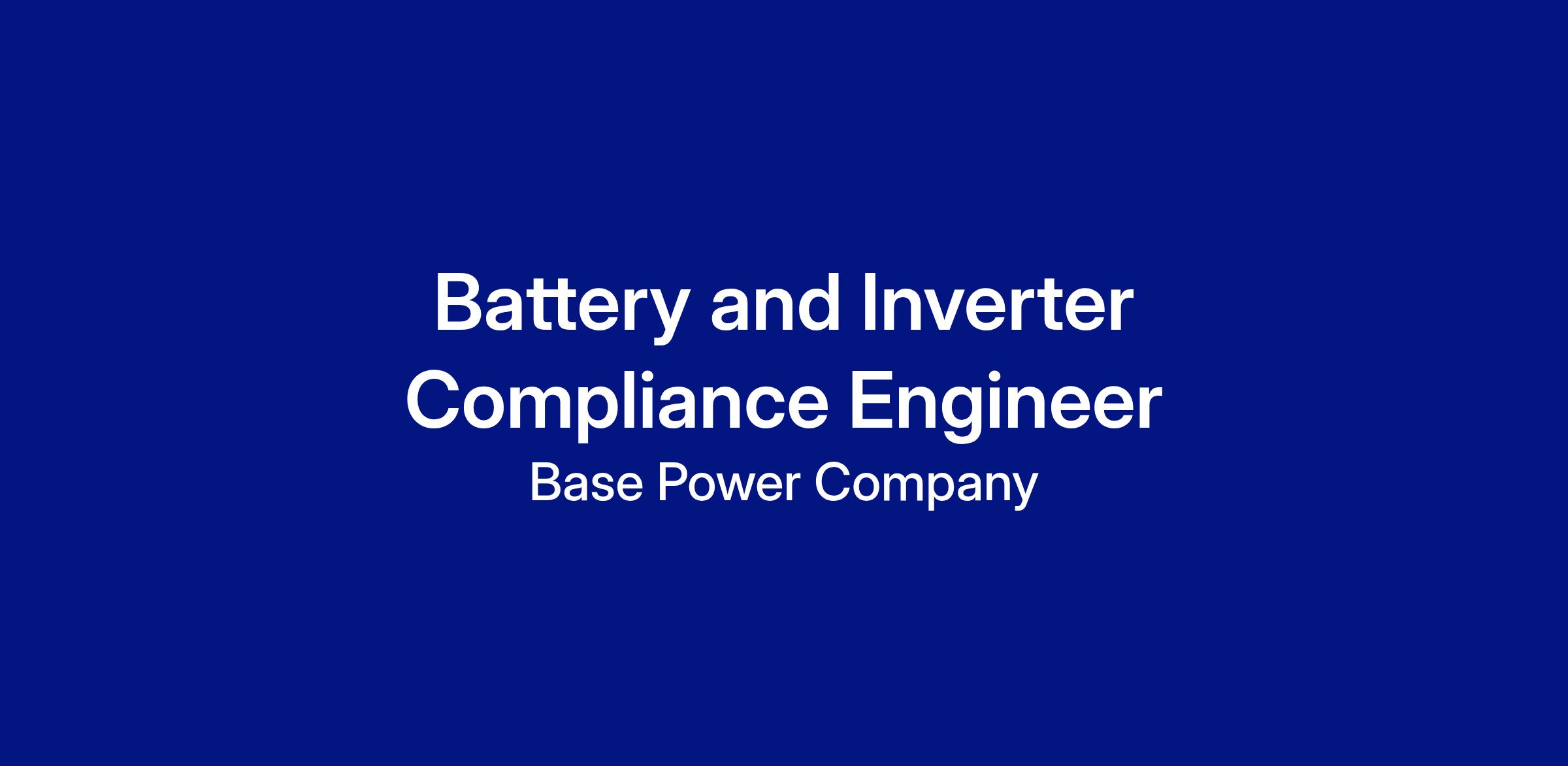 As our Battery and Inverter Compliance Engineer, you will be instrumental in guiding Base through the complex regulatory landscape to achieve full certification and launch of our new battery and inverter. This is a critical, high-ownership role for someone with deep technical knowledge of regulatory standards and a strong drive to influence and navigate the compliance ecosystem.