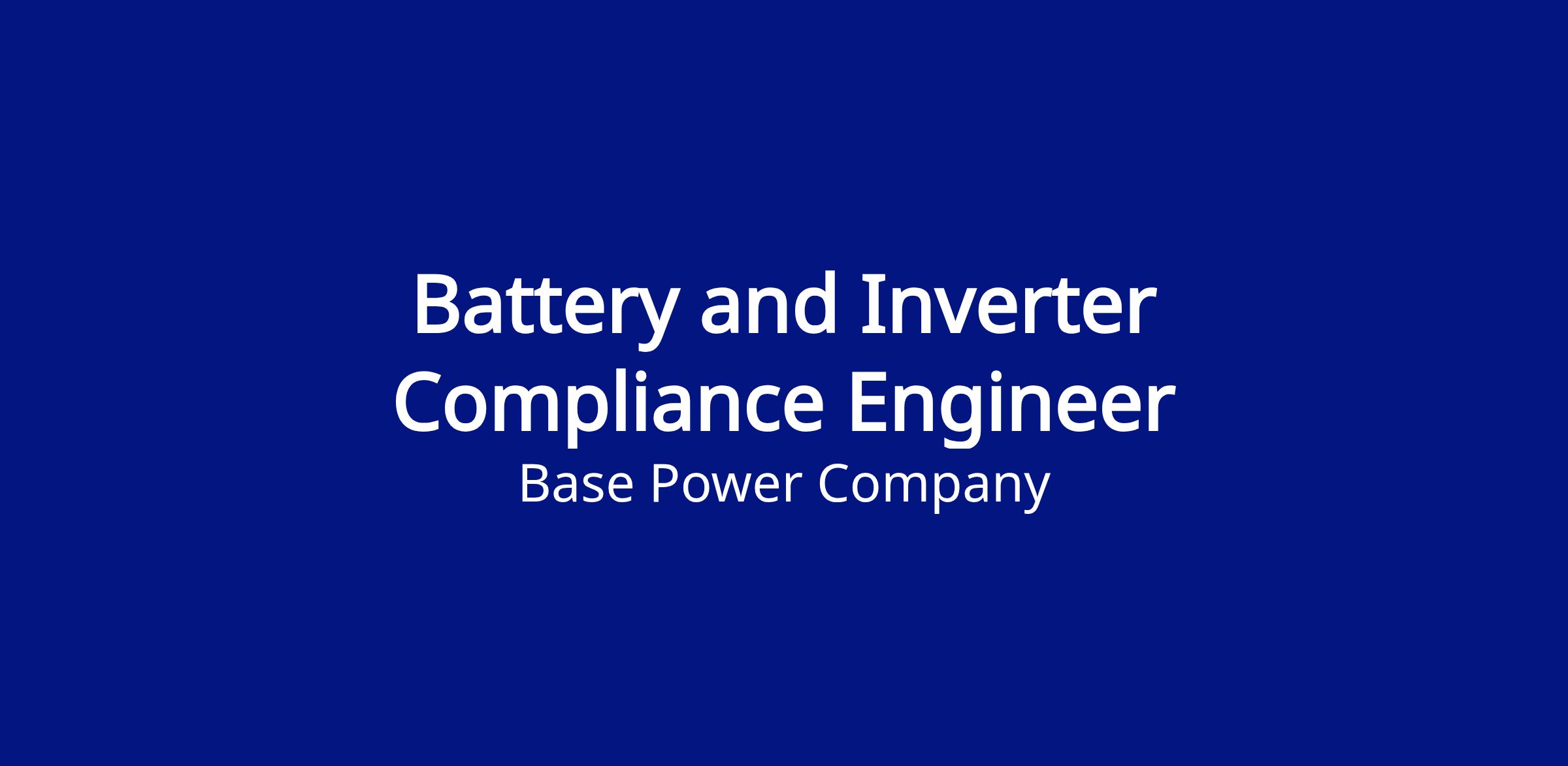 As our Battery and Inverter Compliance Engineer, you will be instrumental in guiding Base through the complex regulatory landscape to achieve full certification and launch of our new battery and inverter. This is a critical, high-ownership role for someone with deep technical knowledge of regulatory standards and a strong drive to influence and navigate the compliance ecosystem.