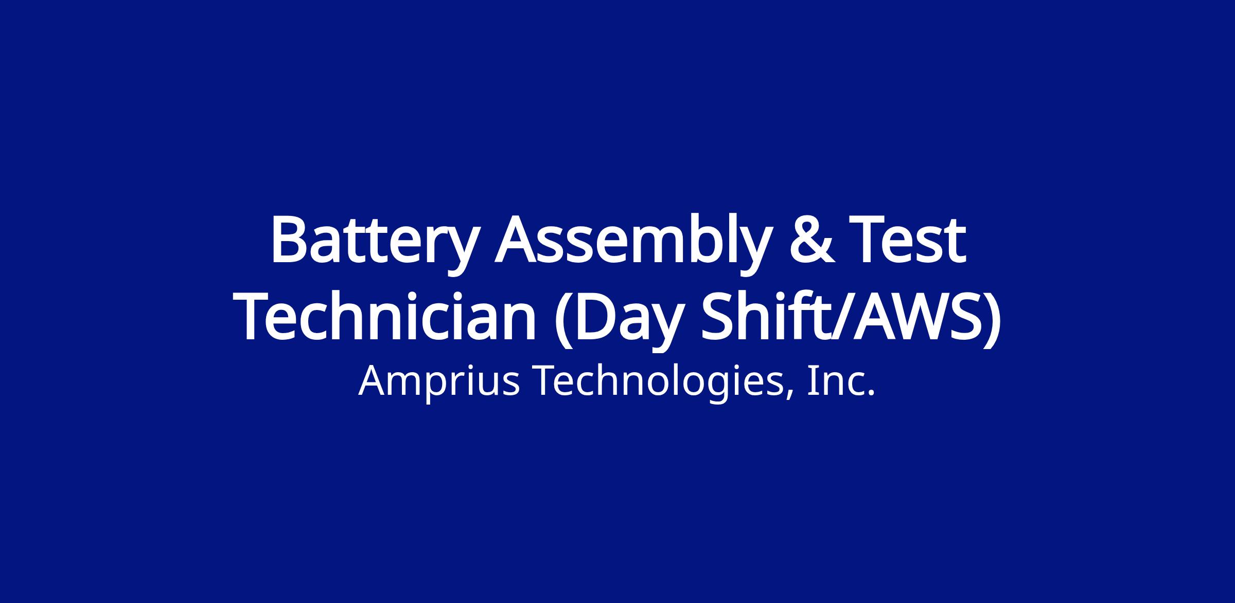 Job Title: Battery Assembly & Test Technician (Day Shift AWS)