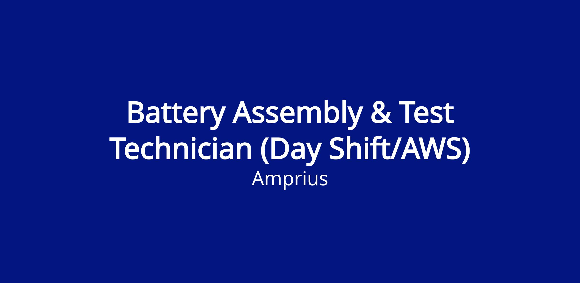 Job Title: Battery Assembly & Test Technician (Day Shift AWS)