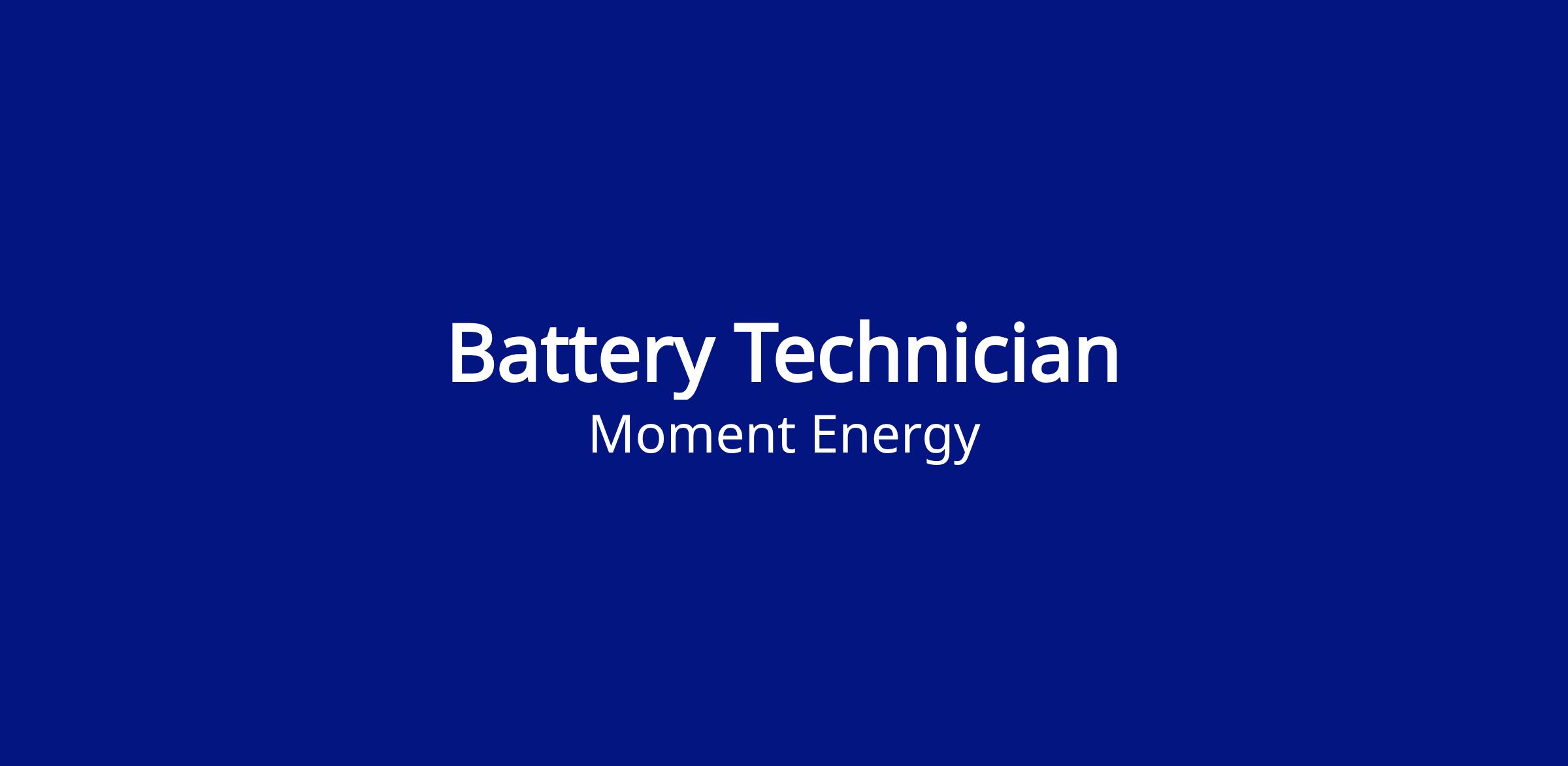 Moment is seeking a Battery Technician to join our team and help ensure smooth, efficient, and high-quality builds of Moment’s Battery Energy Storage Systems!