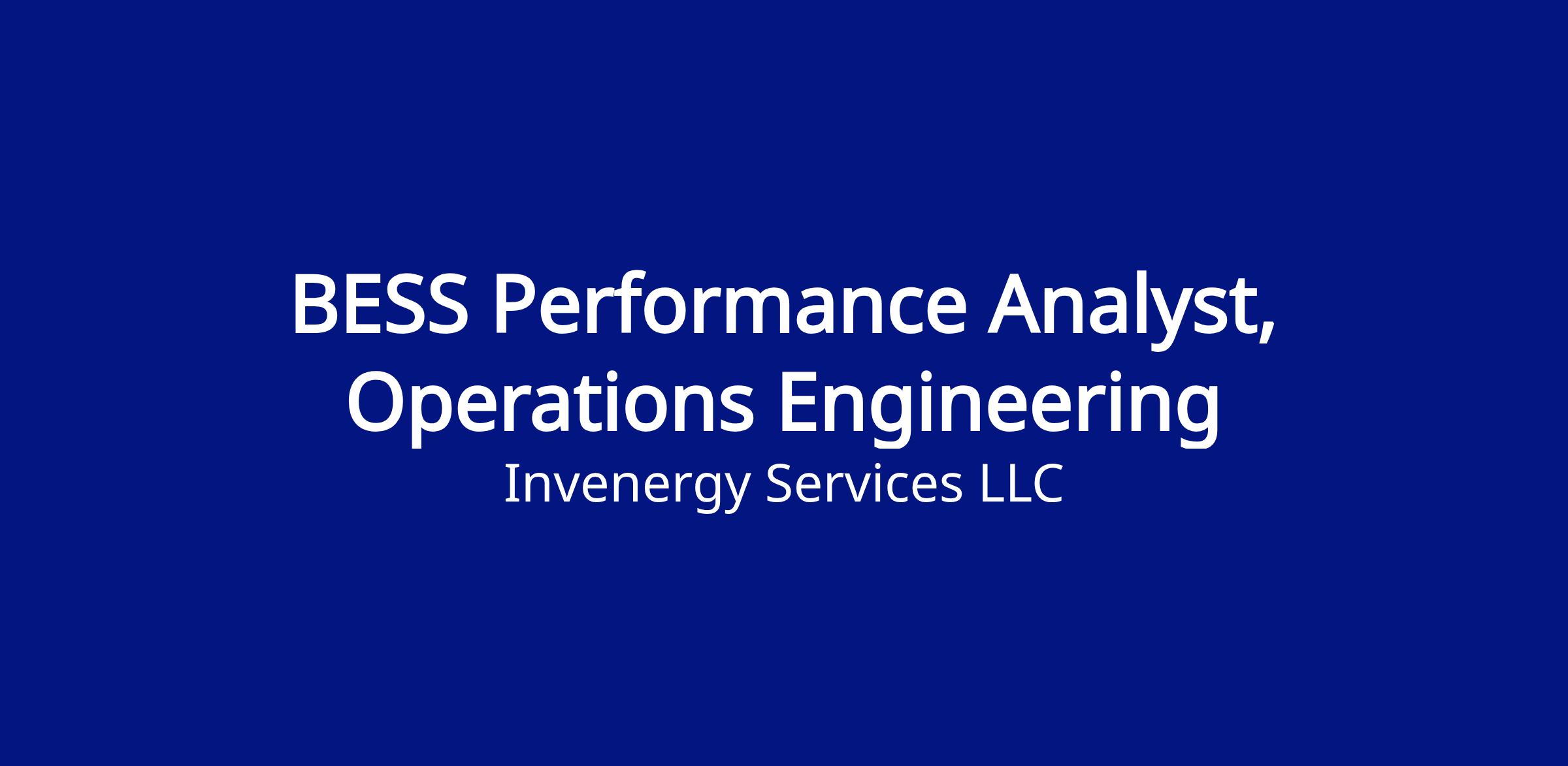Working knowledge of battery energy storage system operations and performance metrics such as availability, round-trip efficiency, and capacity utilization.