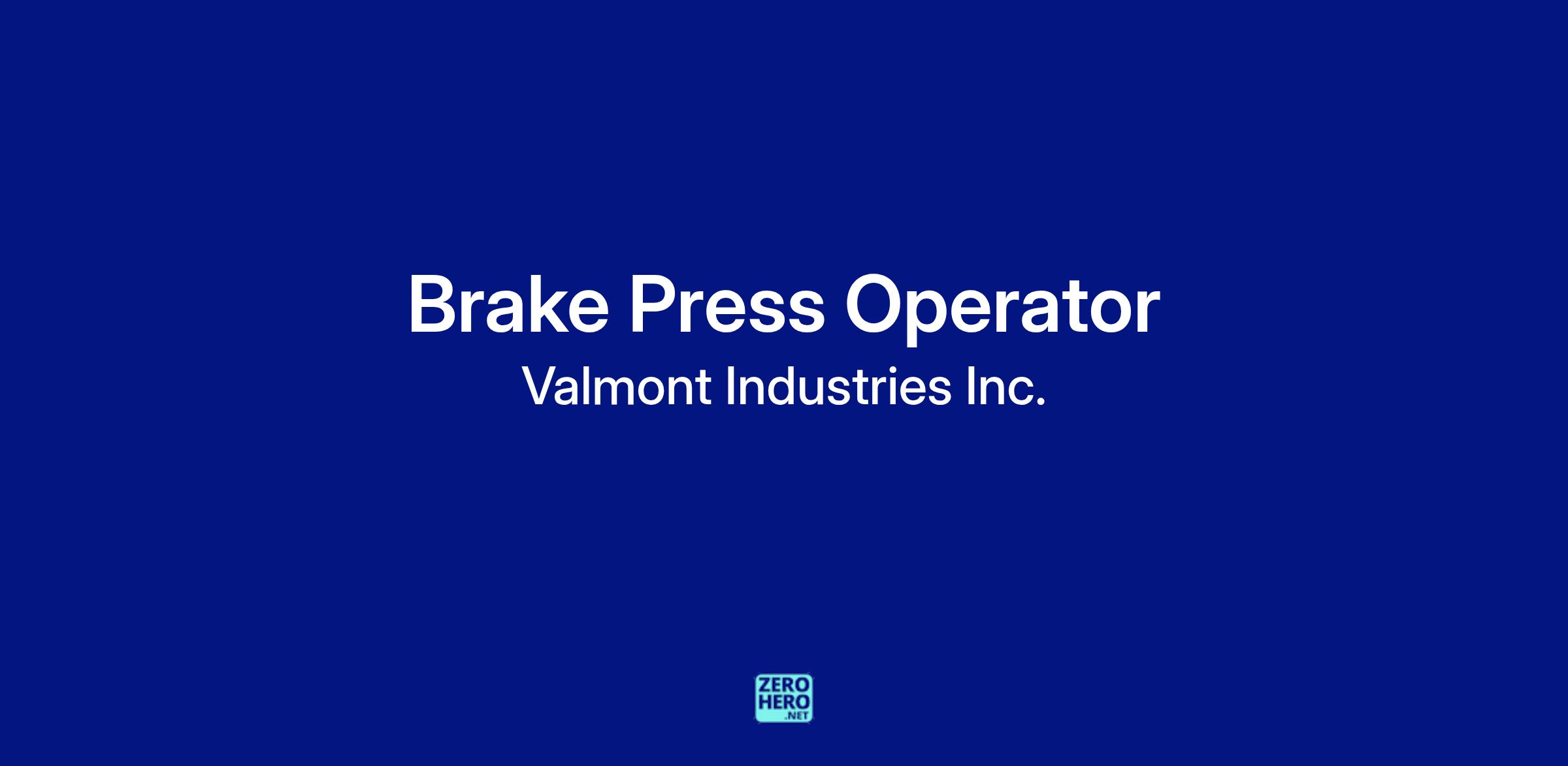 The Brake Press Operator is an individual contributor role that encompasses multiple duties including: set-up brake, load sheet on conveyor, layout and prep sheet, move sheet of raw steel into brake, bend sheet, remove from brake, tack and secure two-piece shafts. Operator works with Operators. Operates overhead crane, plate heater, winch. Fills in for operator on a limited basis once competence levels are met. Maintain equipment for assembly of one piece poles; bolt pads, nylon straps, etc.