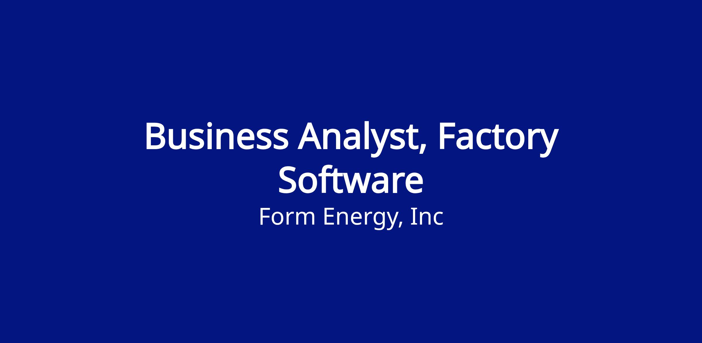 The Factory Software team is looking for a Business Analyst to drive the execution and continuous improvement of our digital manufacturing ecosystem. In this role, you will sit at the intersection of software development and factory operations, ensuring that the Product Manager’s vision is successfully translated into technical reality on the factory floor. You will be responsible for managing the technical lifecycle of software features—from refining user stories to overseeing deployment and post-launch support—while ensuring clear communication between our engineering teams and operational stakeholders. By blending technical project management with deep business analysis, you will help build a unified, software-driven manufacturing environment that scales with Form Energy’s growth.