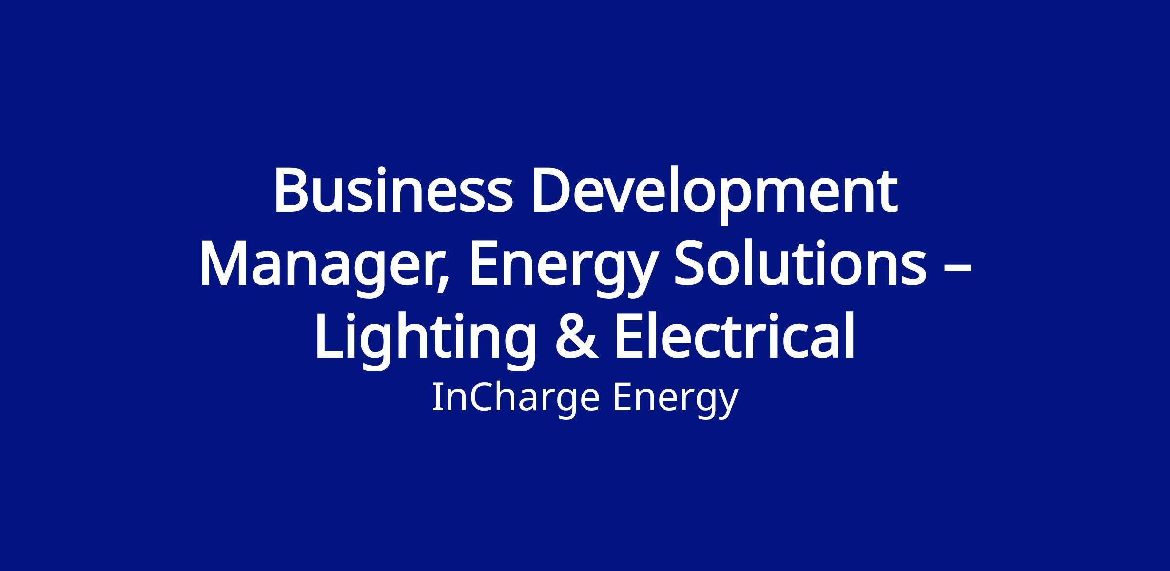 InCharge Energy is seeking a strategic and driven Business Development Manager, Energy Solutions – Lighting & Electrical to lead our efforts in developing and managing large-scale partnerships across lighting and electrical services, EPC, and support. Reporting directly to the Head of Branch Operations, this role is critical to advancing our mission to accelerate clean transportation by delivering comprehensive infrastructure solutions to high-impact customers.