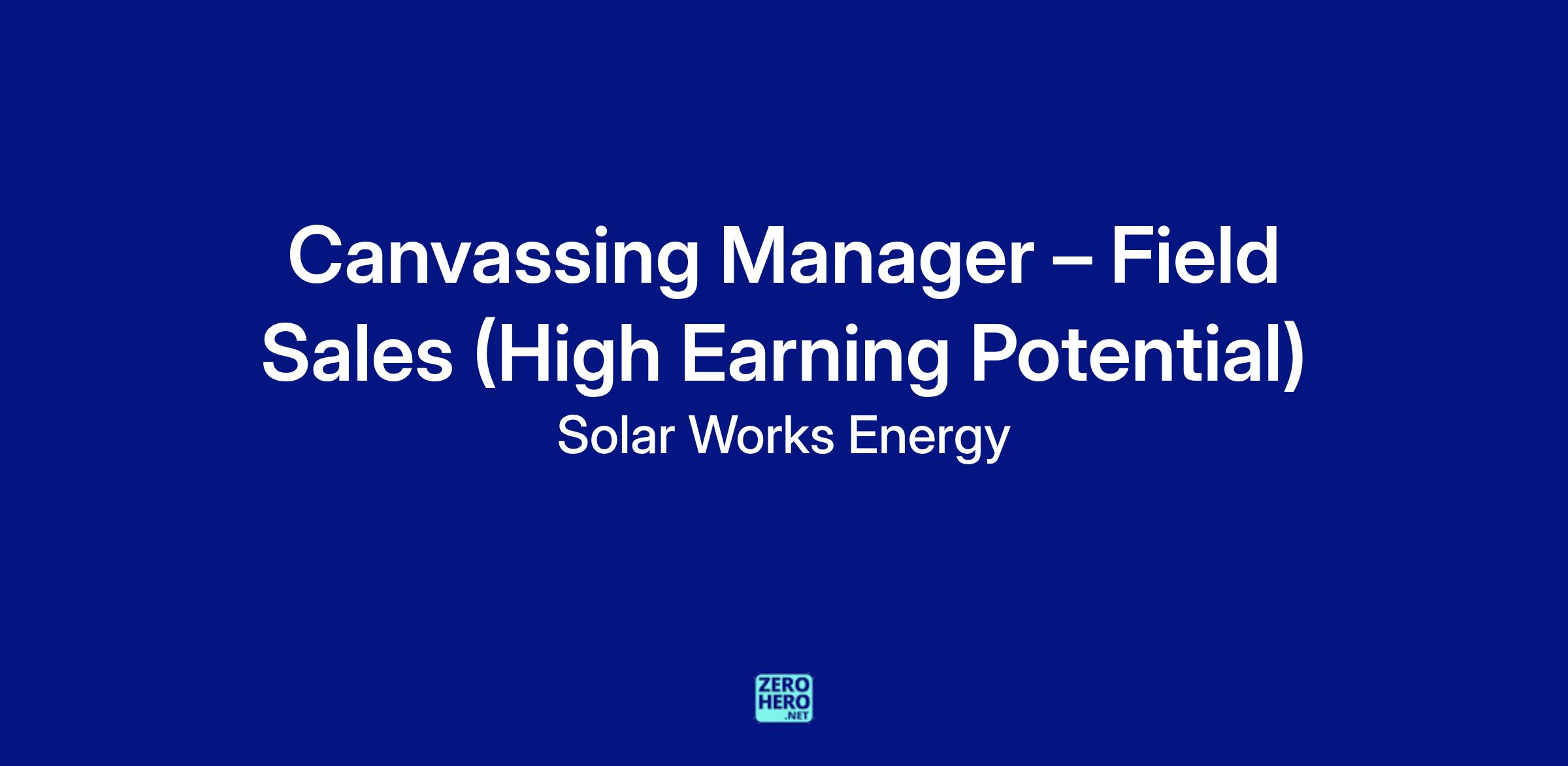 Solar Works Energy is seeking an experienced and driven Canvassing Manager to lead a high-performing field sales team in residential solar. This is a field-based leadership role requiring a mix of door-to-door sales skills, team management, and performance accountability.