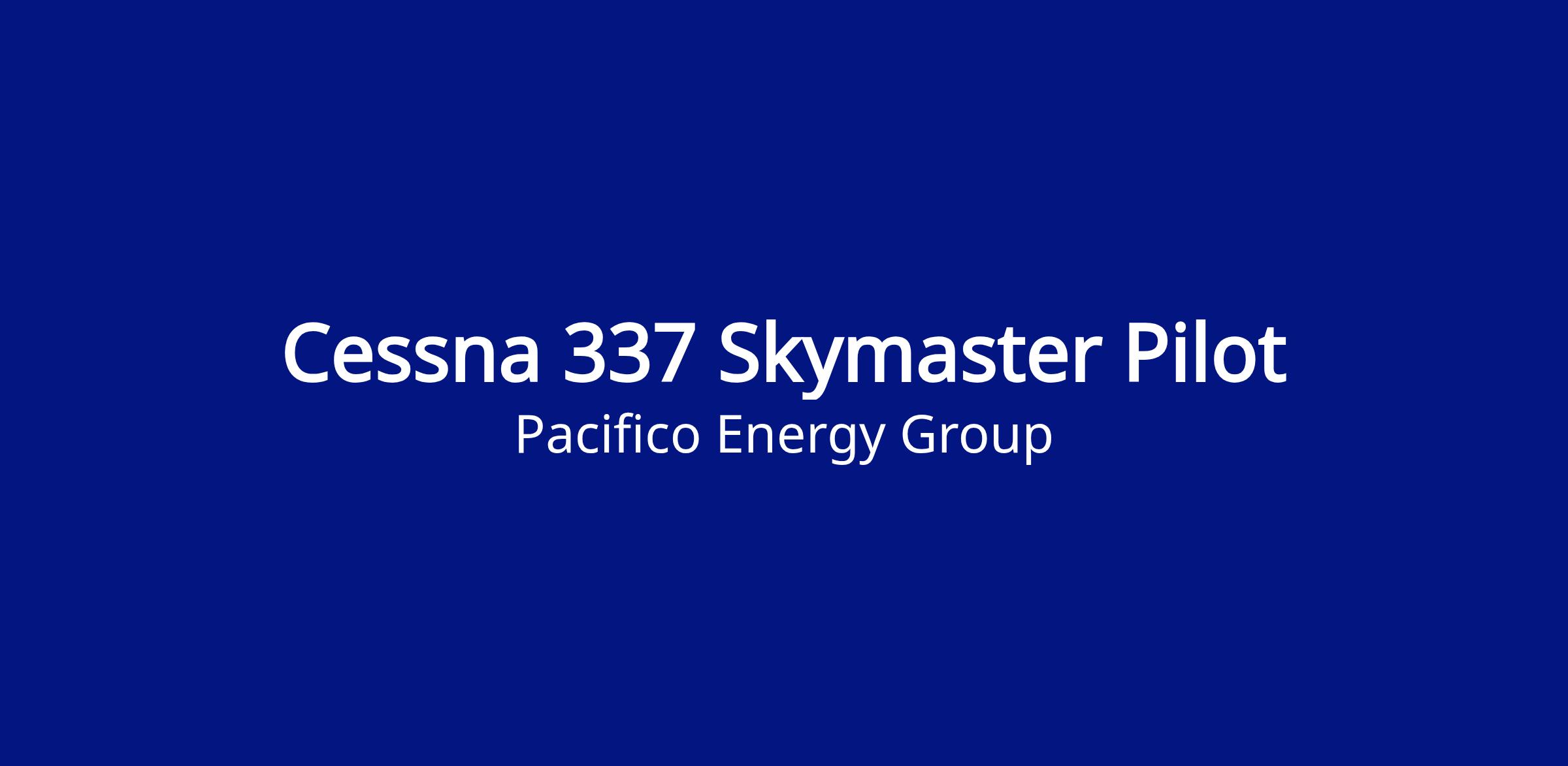 We are hiring Cessna 337 Skymaster Pilots. The pilot shall ensure safe, effective and efficient Cessna 337G/H SkyMaster flight operations to include identification of aircraft maintenance faults and corrective actions.