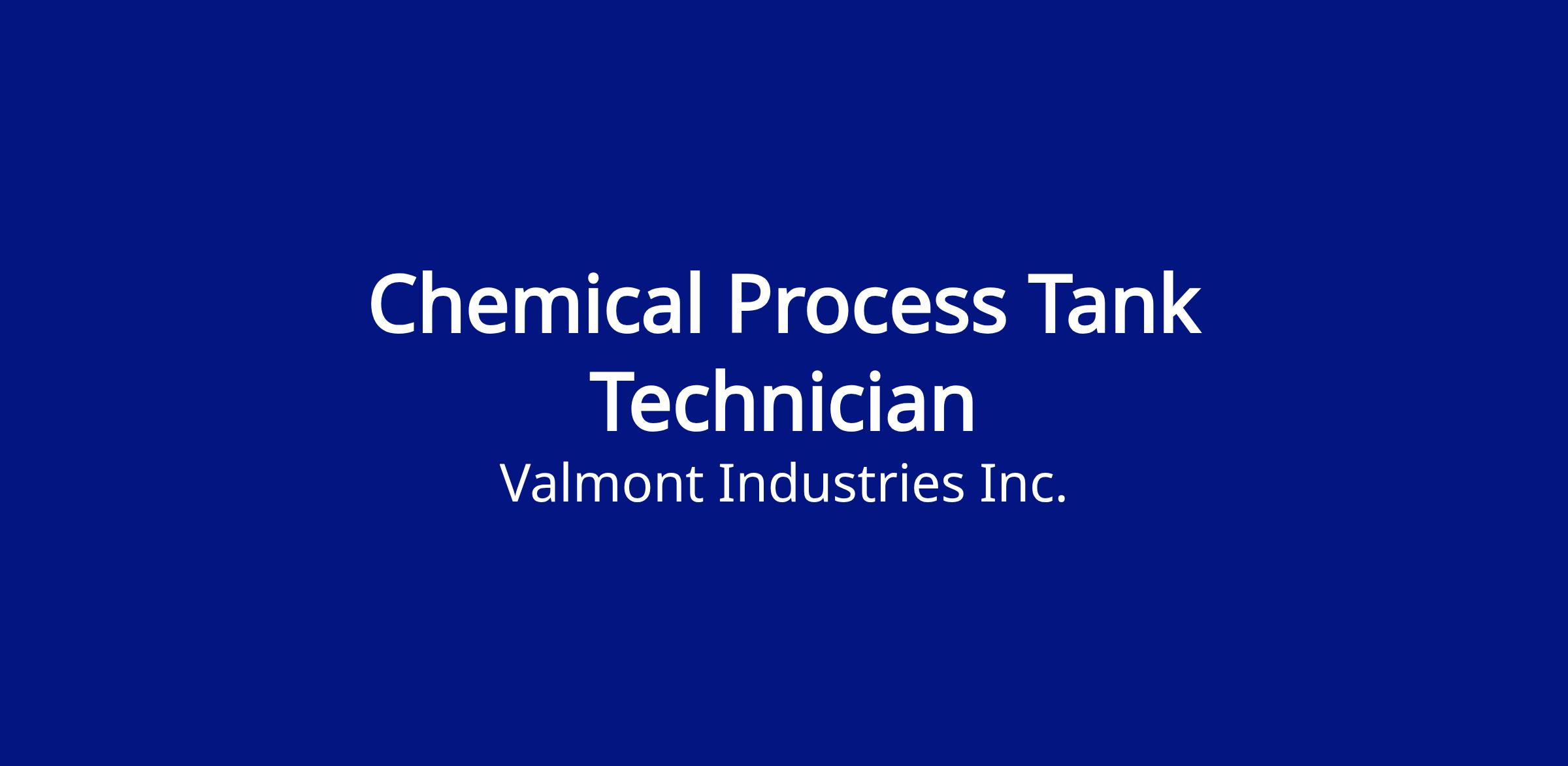 This is an individual contributor position responsible for monitoring galvanizing equipment and fluids to ensure safe and proper galvanizing operation for high quality galvanized products. The Chemical Process Tank Technician is responsible for adjusting flow rates to provide maximum output of iron and zinc sulfate crystals. Incumbent is also responsible for leveling and changing crystal bags and filters and for performing minor maintenance to the galvanizing process tanks. The Chemical Process Tank Technician will add acid and maintain the fluid levels and the temperatures in the galvanizing process tanks. Incumbent will be responsible for operating the molten zinc recovery (MZR) machine. Additional duties include assisting with loading the crystal trailer, washing down the process tanks, maintaining the dryer area and the areas under the process tanks, assisting in general plant clean up and housekeeping, and working safely with the required Personal Protective Equipment (PPE).