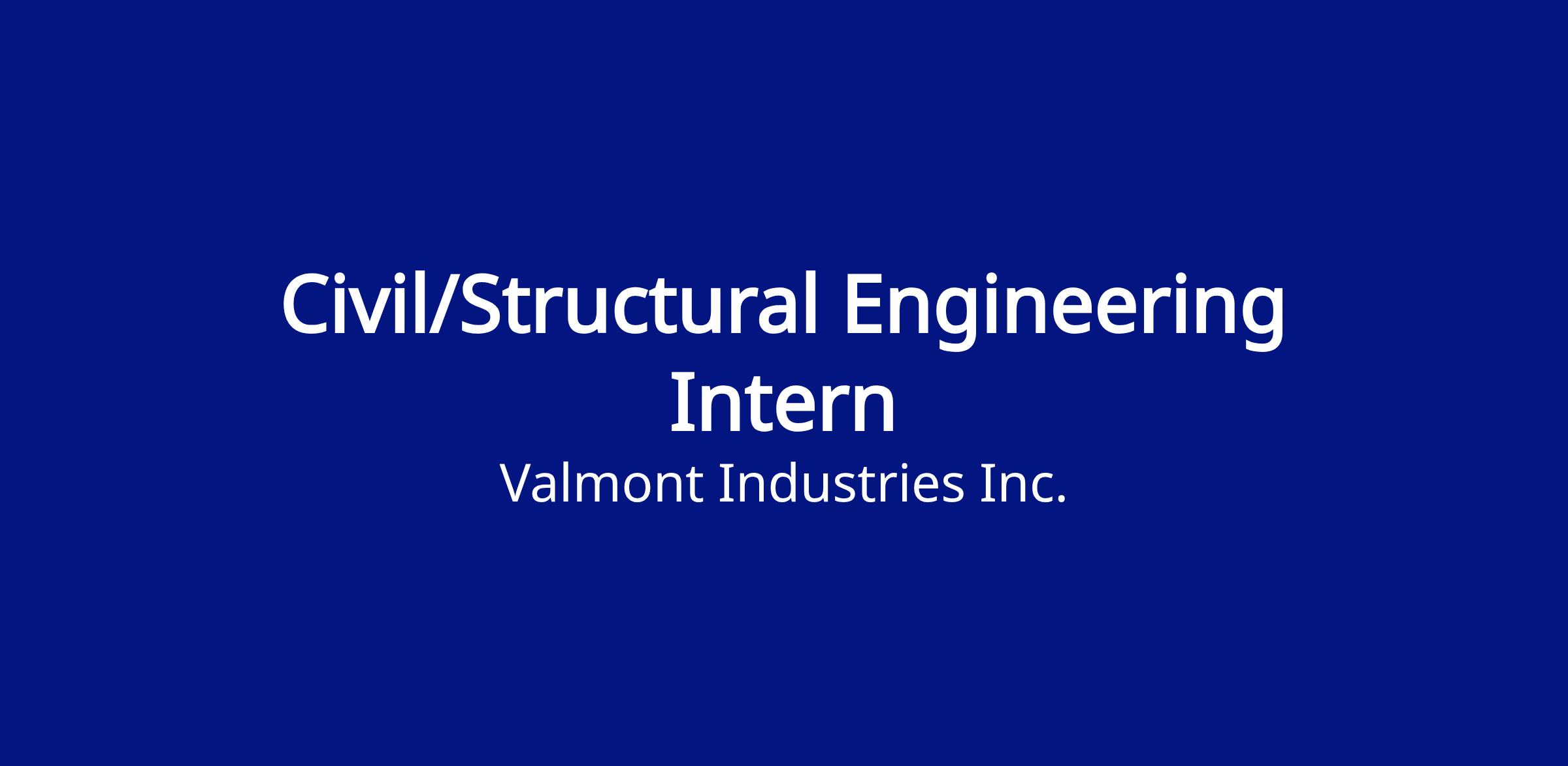 Valmont’s internship program is designed to empower emerging professionals by offering meaningful work, mentorship, and professional development opportunities. You’ll work alongside experienced engineers and subject matter experts across a variety of disciplines while building technical and professional skills that will serve you throughout your career.