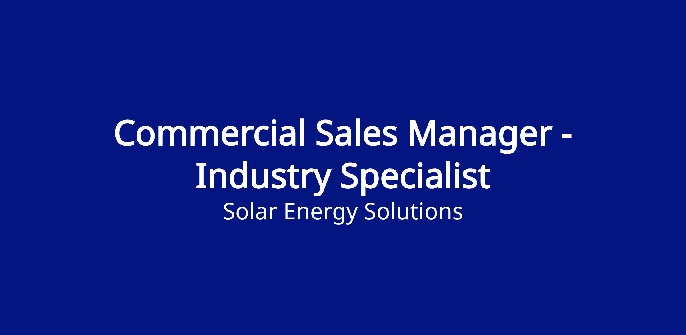 Solar Energy Solutions is seeking an experienced and knowledgeable Commercial Sales Manager - Industry Specialist to join our expanding team. This role focuses on leveraging deep industry knowledge to drive strategic sales within targeted commercial sectors. As a key player in our sales organization, you will champion tailored solar solutions that meet specific industry needs, enhancing our presence and impact in the commercial solar market.