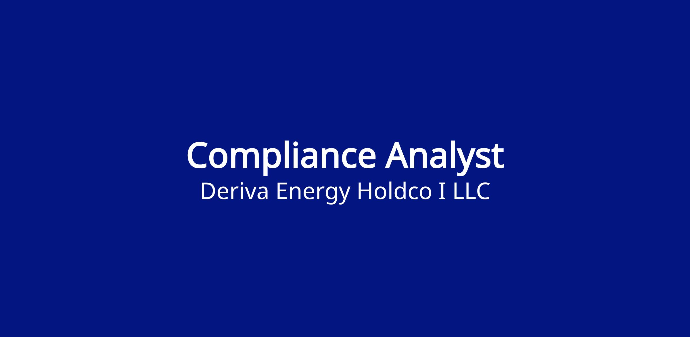 The Compliance Analyst supports Deriva Energy’s efforts to maintain compliance with applicable NERC Standards. This role works closely with the Generation Compliance team and internal Subject Matter Experts (SMEs) to help review documentation, maintain compliance records, and support ongoing monitoring of compliance activities. The Compliance Analyst will assist with evidence collection, documentation updates, and audit preparation while gaining familiarity with NERC requirements and internal compliance processes. This position may also support small compliance-related projects and process improvement initiatives.