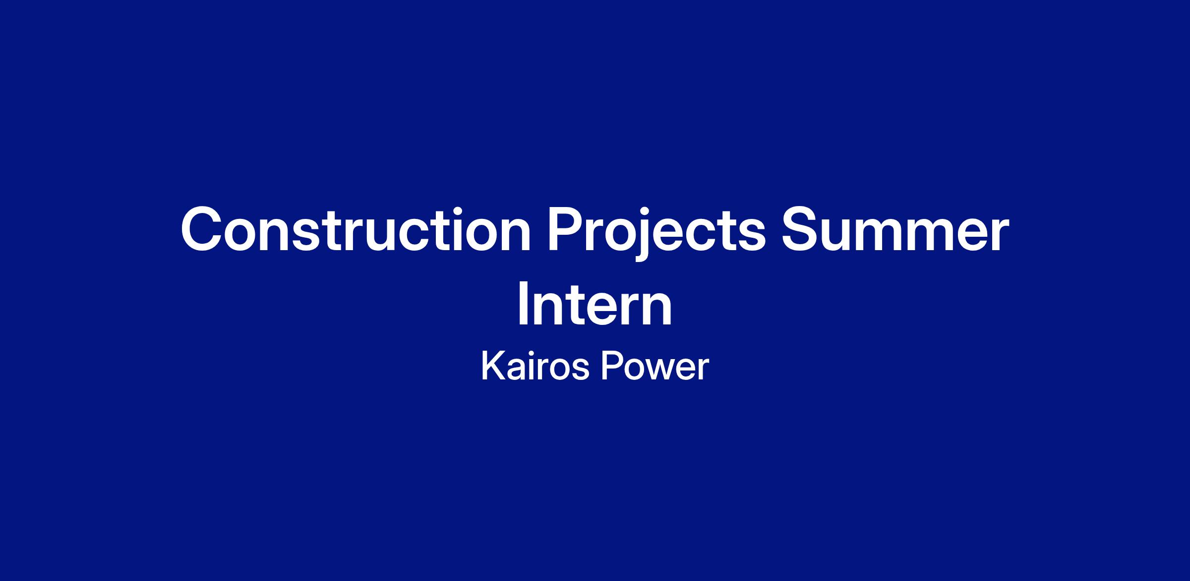 Kairos Power is looking for a highly motivated Construction Project Intern to support the team with tasks related to the design and construction of new site and facility improvements. The successful candidate will be responsible for performing a variety of project-related administrative, and technical tasks. This person will work directly with Project Engineers and Construction Management Specialists to perform the following: