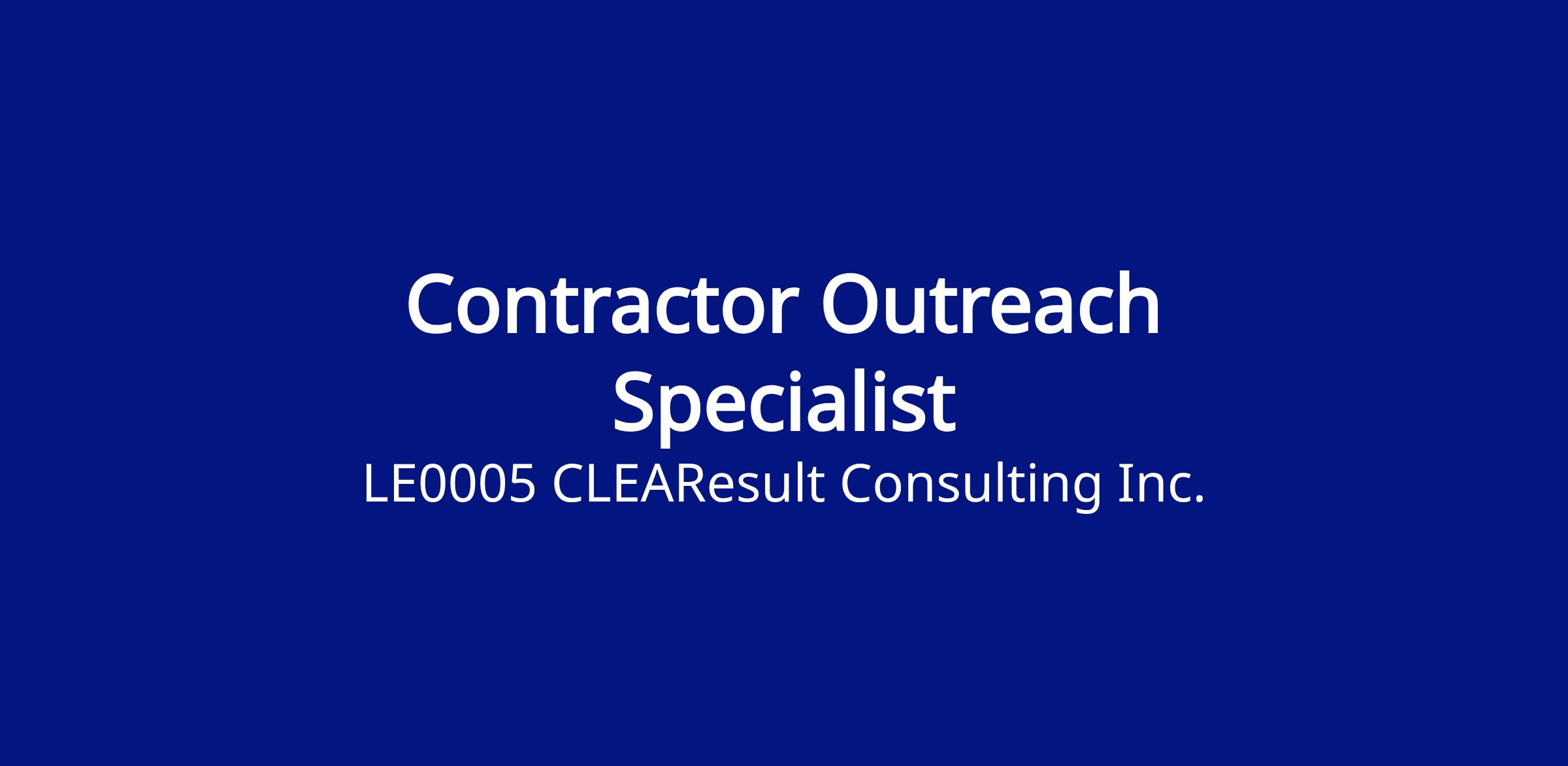 To join our team as a Contractor Outreach Specialist. Responsible for developing an increased awareness in and adoption of targeted energy efficient technologies, strategic market development, trade ally and customer satisfaction, as well as delivering on client goals related to comprehensive energy-efficient home improvements. Adhering to designated program budgets and allocated resources. Trade Allies include contractors offering installation of home performance, weatherization or energy-efficiency measures and contractors offering installation and servicing of HVAC equipment in a residential market.