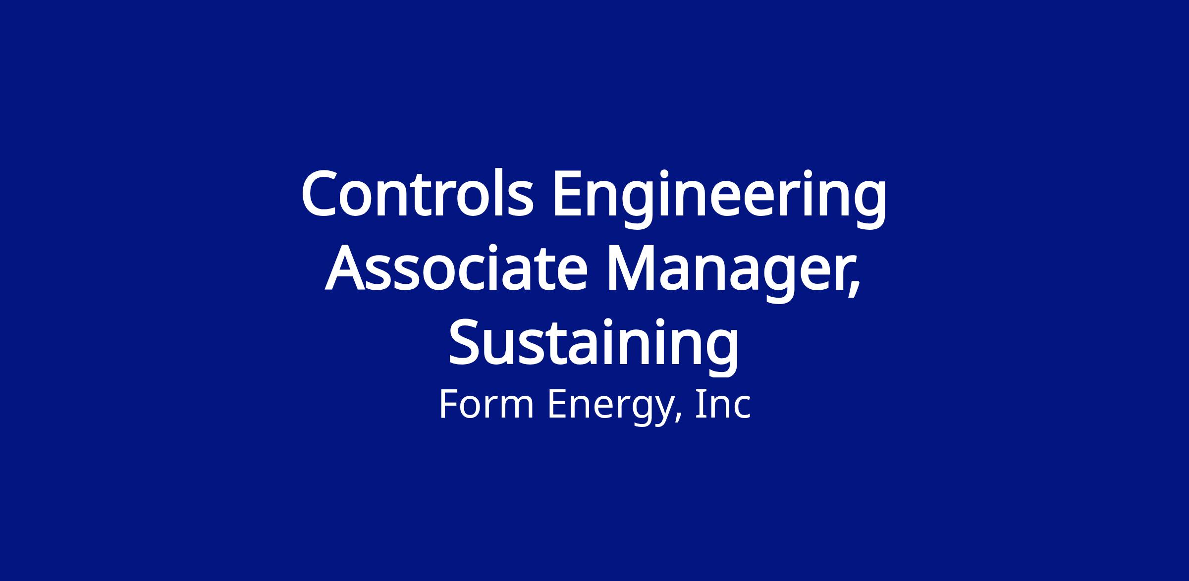We are looking for an experienced controls engineering manager to join the Manufacturing Control and Execution Systems - Sustaining team. In this role you will lead Controls, Robotics, and SCADA Technicians and will take ownership of both maintenance and continuous improvement of novel equipment used to manufacture Form Energy’s Iron-Air battery. This role offers an exciting opportunity to be part of a mission critical team that owns control and execution systems throughout their lifecycle including design, development, deployment, and sustaining.