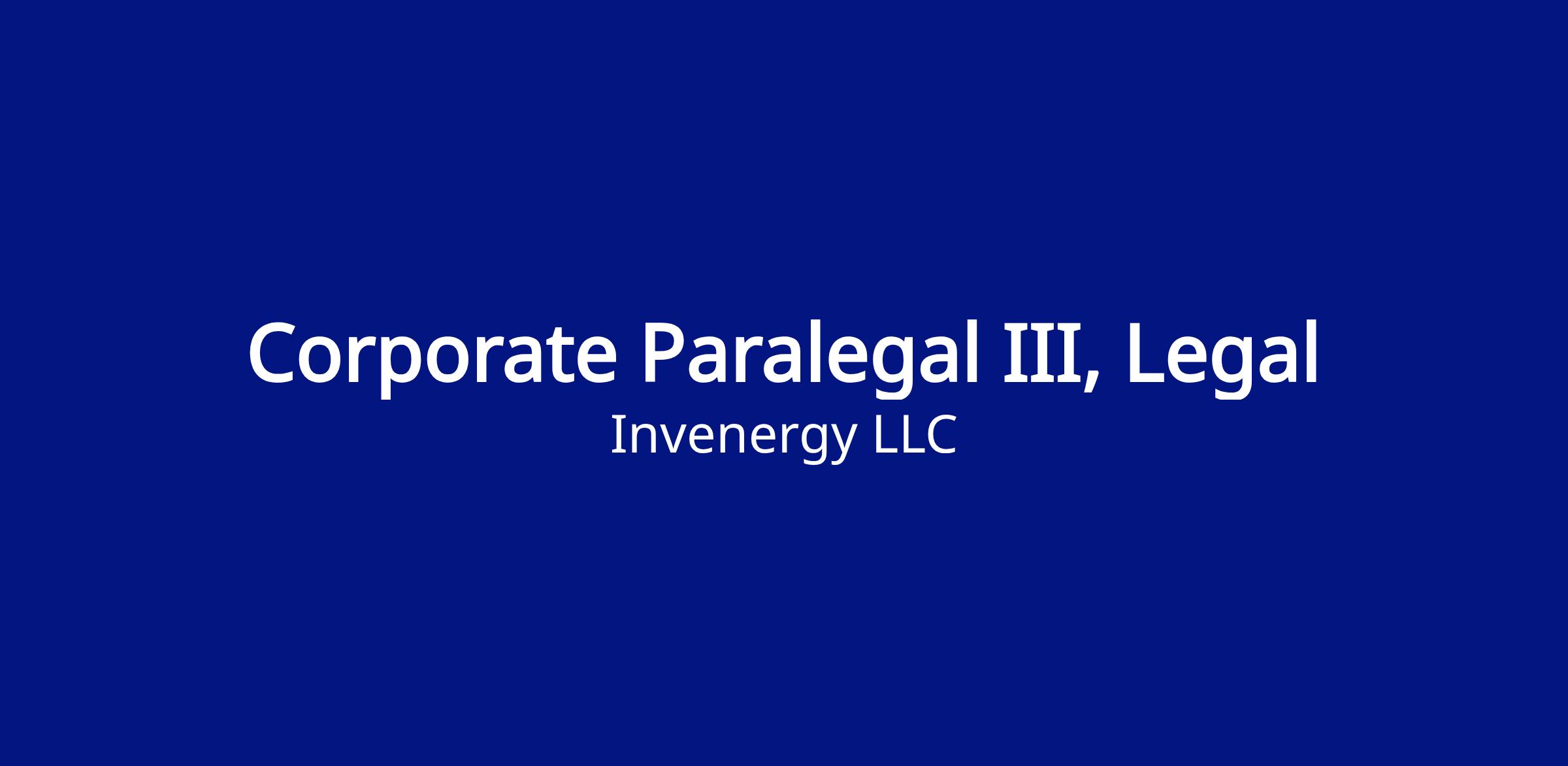 The Corporate Paralegal III will be responsible for supporting Invenergy’s in-house Legal department with preparing, filing, and reviewing documents related to development, M&A, project finance, and corporate governance matters while working cross-functionally with other teams within the organization to meet project needs. This on-site position will be located at Invenergy's headquarters in downtown Chicago, IL.