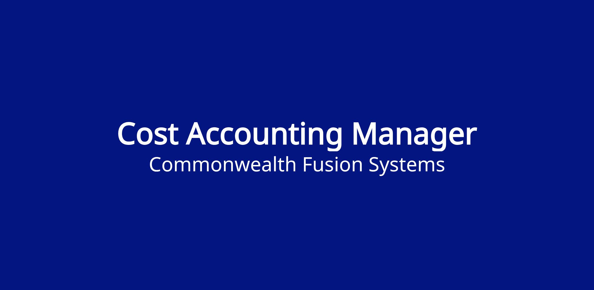 The Cost Accounting Manager will be responsible for developing and leading management accounting initiatives for the company, with a focus on ensuring the costs of materials, magnet manufacturing sub-assemblies, and subsystems that make up SPARC, our fusion energy machine, are accounted for timely and accurately in our ERP.