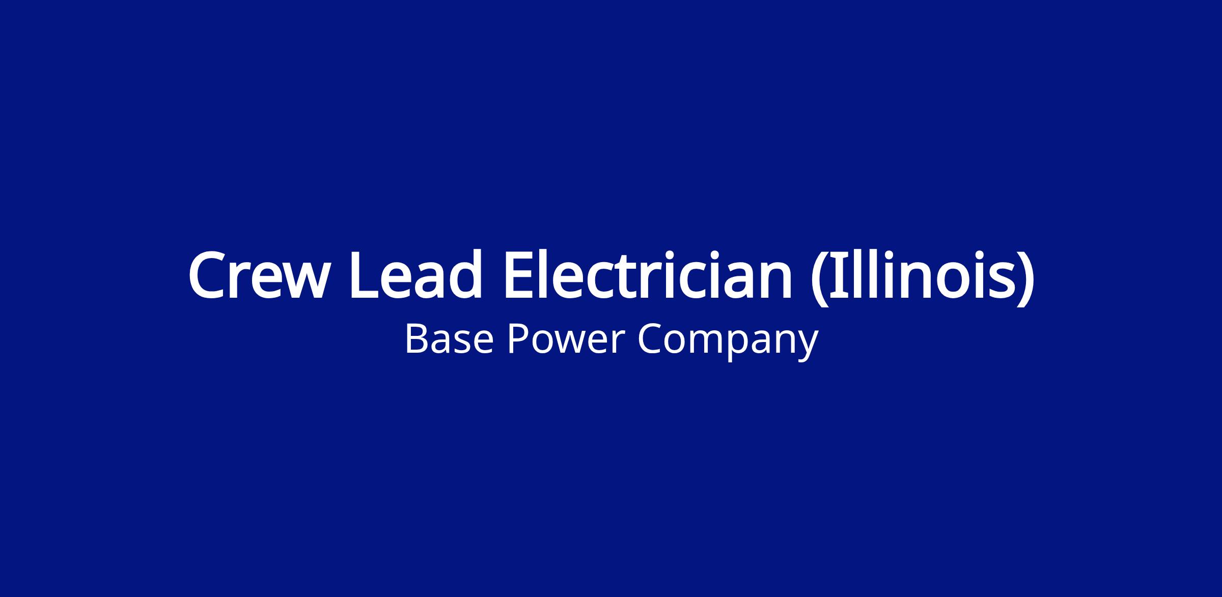 This is a pioneering position in Base Power’s expansion beyond Texas, marking our first entry into Illinois. As an electrician in this region, you’ll play a foundational role in shaping our field operations, training new crews, and setting the standard for excellence in service delivery. The ideal candidate brings a builder’s mindset—someone who thrives in fast-moving environments, embraces our mission to create energy abundance, and knows how to turn vision into reality through disciplined execution and strong leadership. This role is not just about technical expertise; it’s about laying the groundwork for long-term success in a new market.