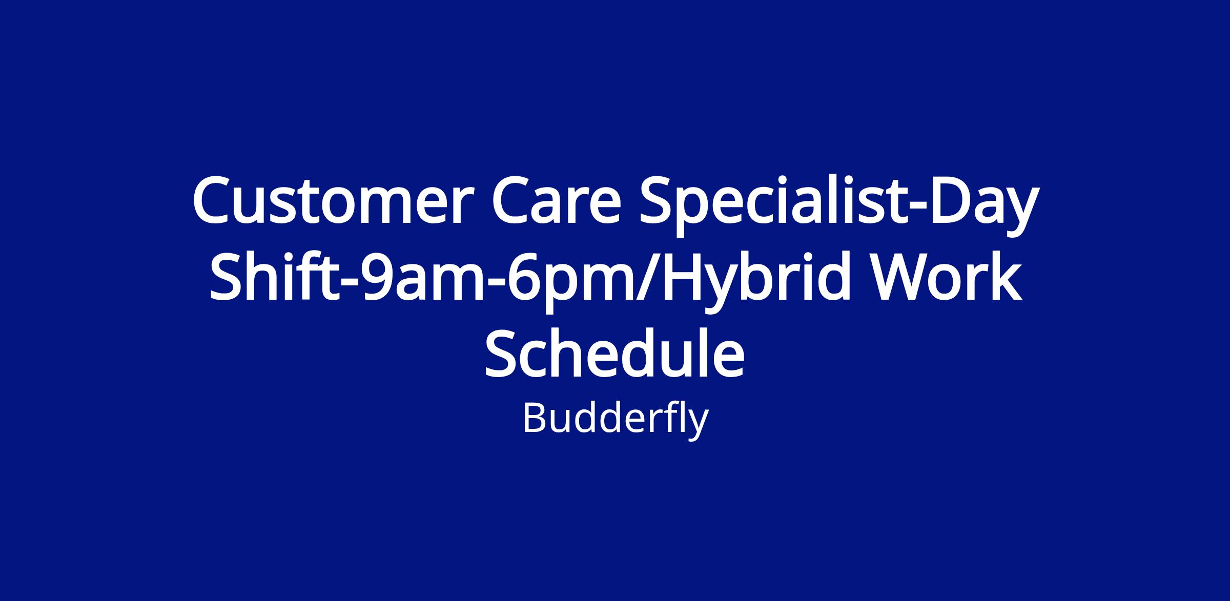 Customer Care Specialist-Day Shift-9am-6pm/Hybrid Work Schedule