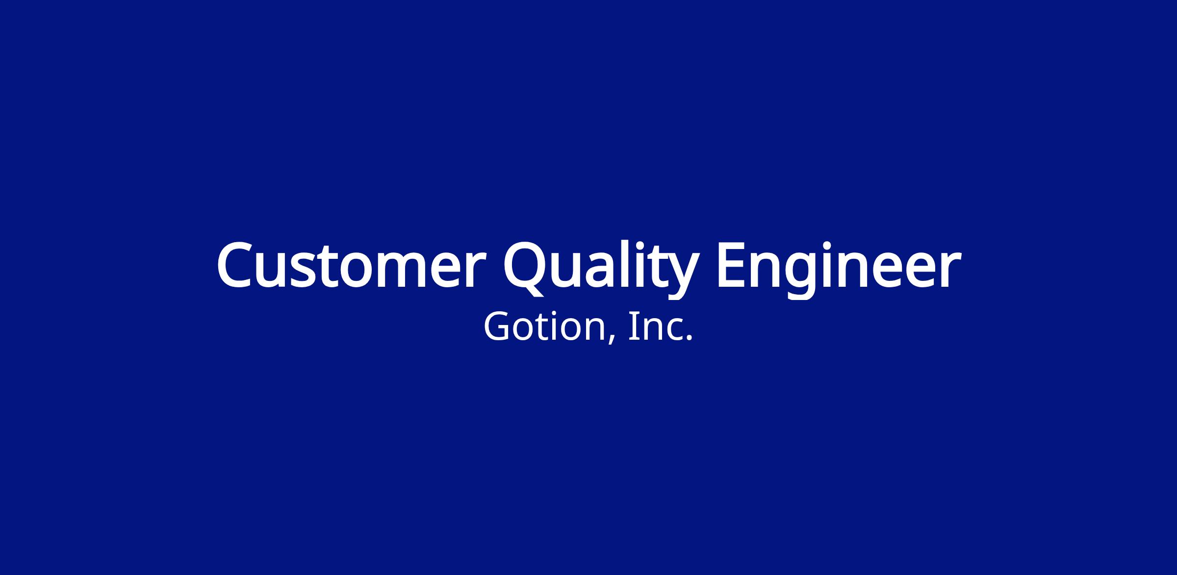 Job Title: Customer Quality Engineer