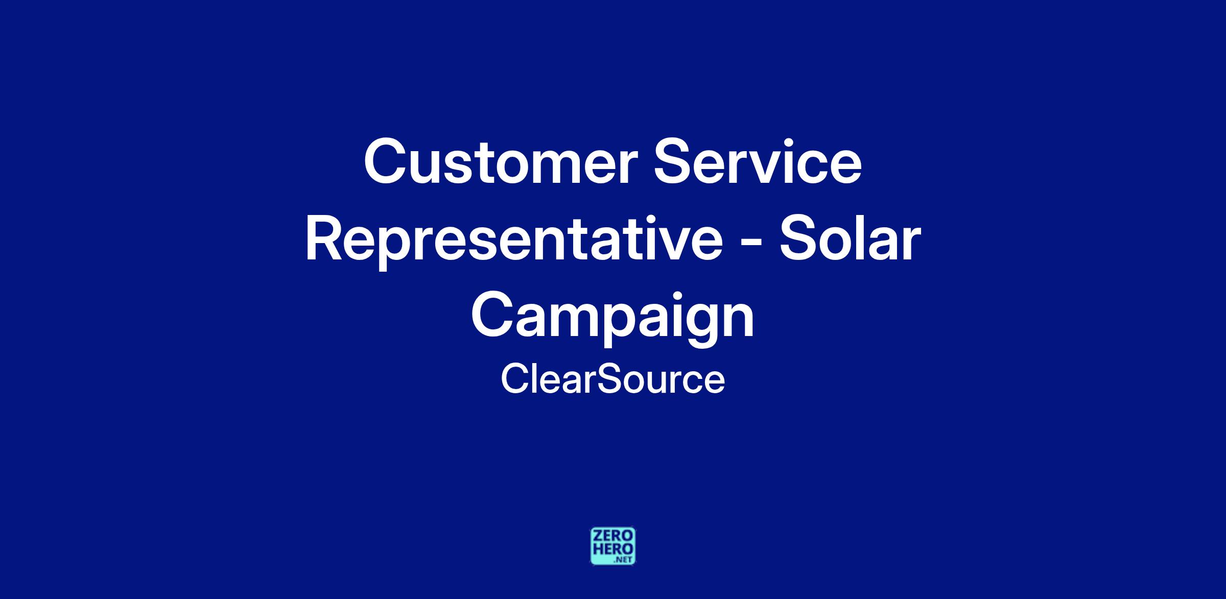 Problem-Solvers Needed!! Are you a person who loves solving problems, figuring out how things work, and helping others with quick effective solutions? You thrive in customer experience, staying one step ahead, and making sure everything runs smoothly. If that sounds like you, don't wait - apply now and be the superhero our client's customers need! ClearSource is seeking an exceptional customer service professional to join our team as a Customer Service RepresentativeIn this role, you will provide customer support for our client’s premium Solar program. You will help customers eliminate the stress and hassle related to home maintenance services. We need individuals with at least 1 year experience with a strong focus on customer support who can think positively, solve problems, and deliver friendly, effective solutions.What you will do as a Customer Service Representative- Build and maintain positive relationships with customers, co-workers, and all levels of the organization.