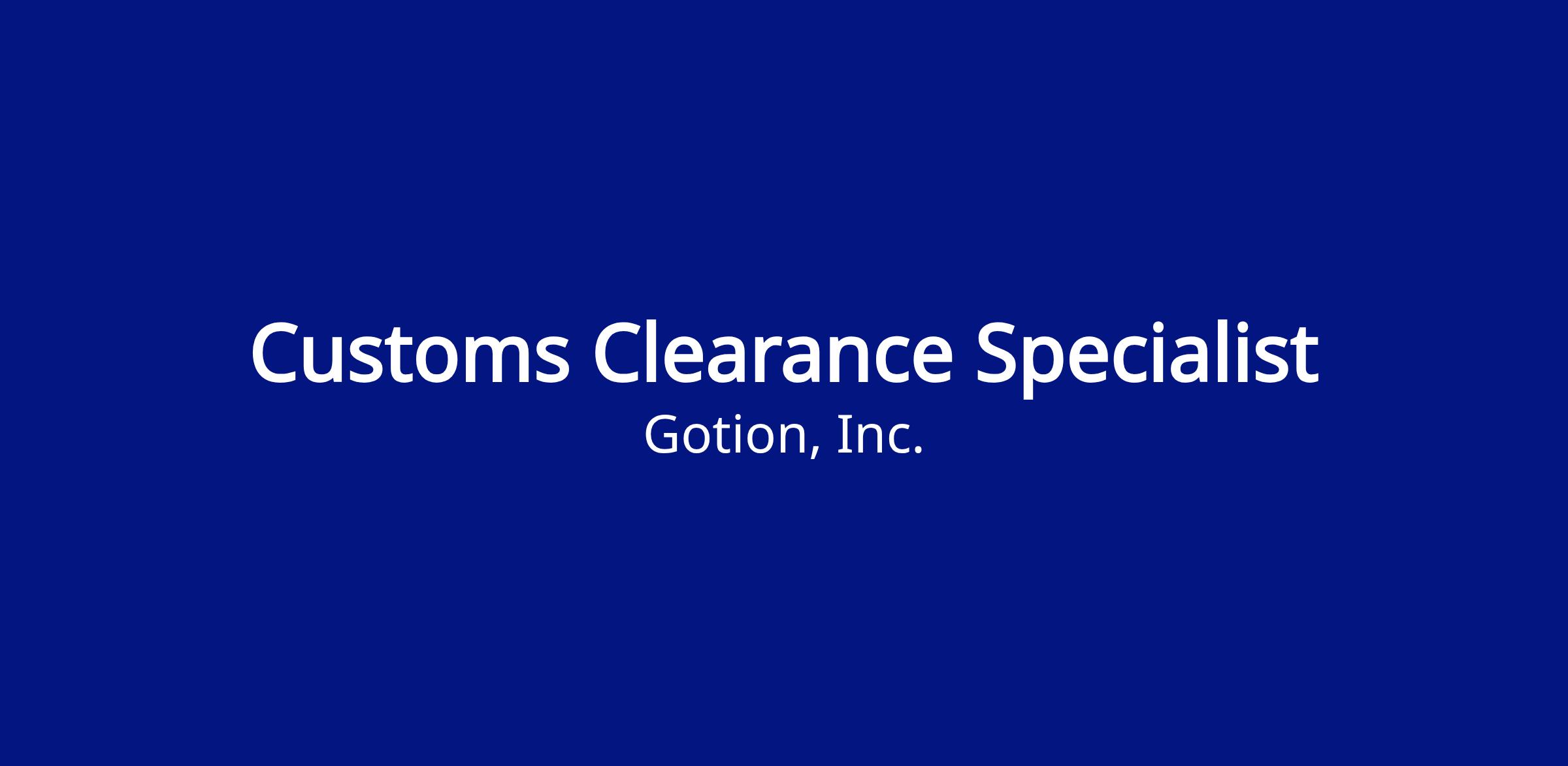 Job Title: Customs Clearance & Trade Compliance Specialist