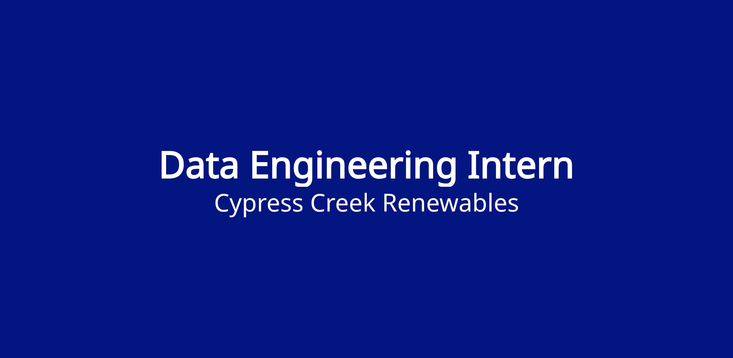 Cypress Creek Renewables is an equal opportunity employer and considers all qualified applicants without regard to race, color, religion, sex, sexual orientation, gender identity, national origin, age, disability, or veteran status. We are committed to providing a workplace that is inclusive and values diversity, and we encourage candidates from all backgrounds to apply.