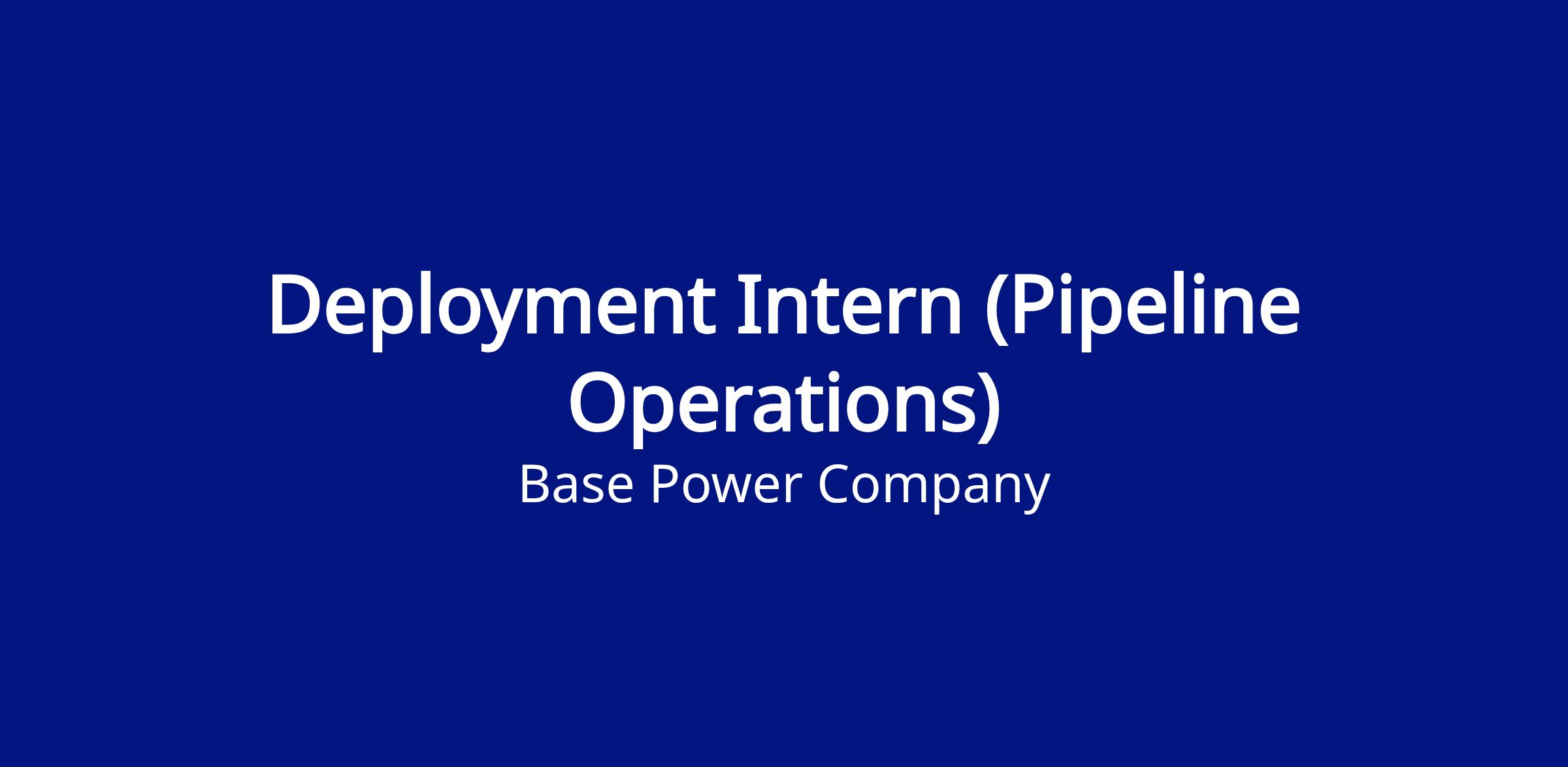Base is seeking a highly organized and execution-focused Project Operations Associate Intern to support both the pre- and post-installation stages of our battery deployments. This role offers hands-on experience at the heart of our deployment pipeline — contributing to the day-to-day task execution that keeps projects moving from contract through to completion. Because we're a fast-moving startup, the scope of this role evolves constantly, and we expect this person to adapt quickly, stay attentive to the details, and bring a proactive mindset to everything they do. This role is crucial for maintaining a healthy project pipeline and enabling Base Power's rapid growth.