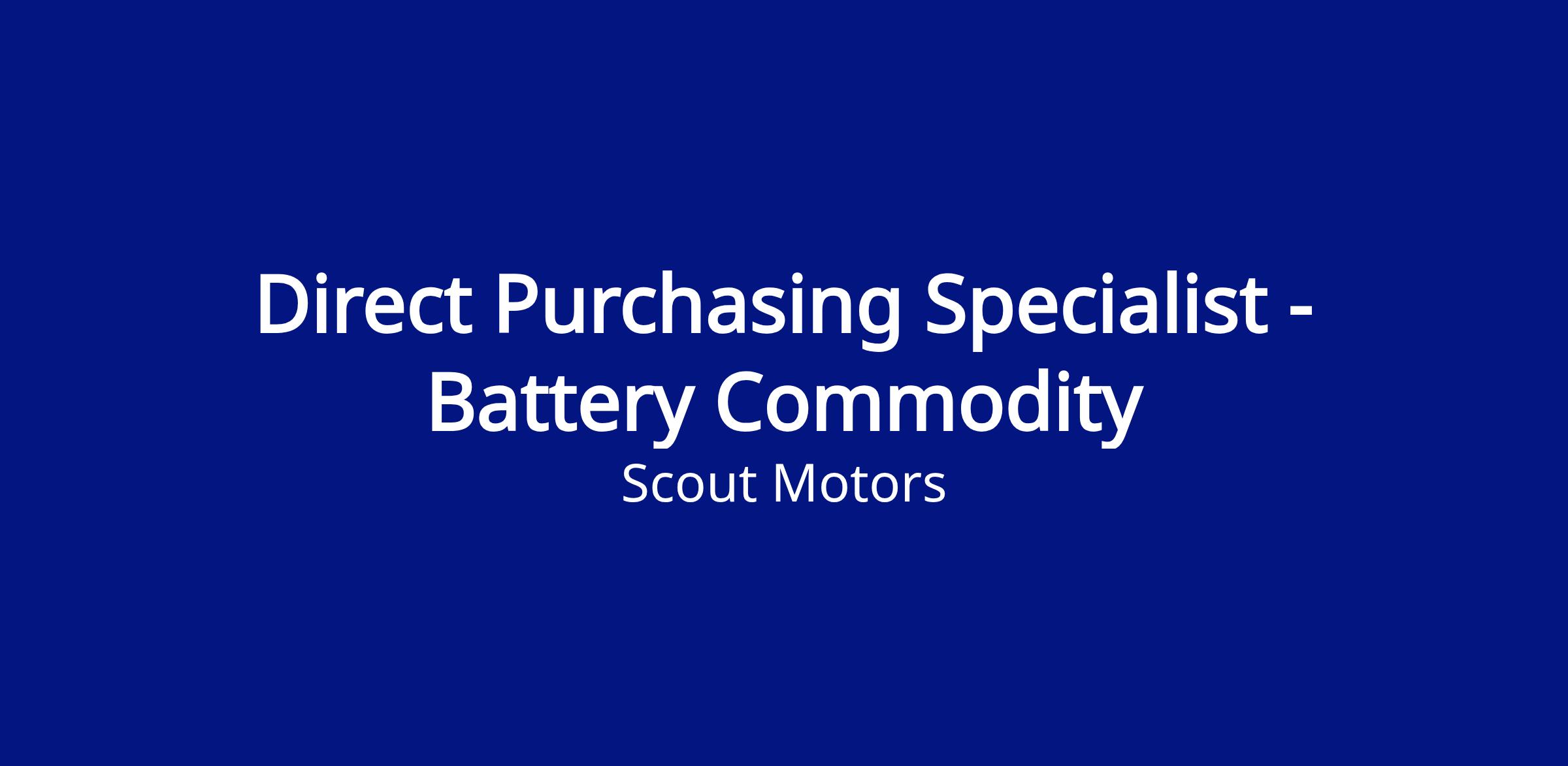 - This role will be part of a cross matrixed team of buyers with direct responsibility for sourcing and securing supply for Battery and Powertrain System–related components for Scout’s REEV products in North America.