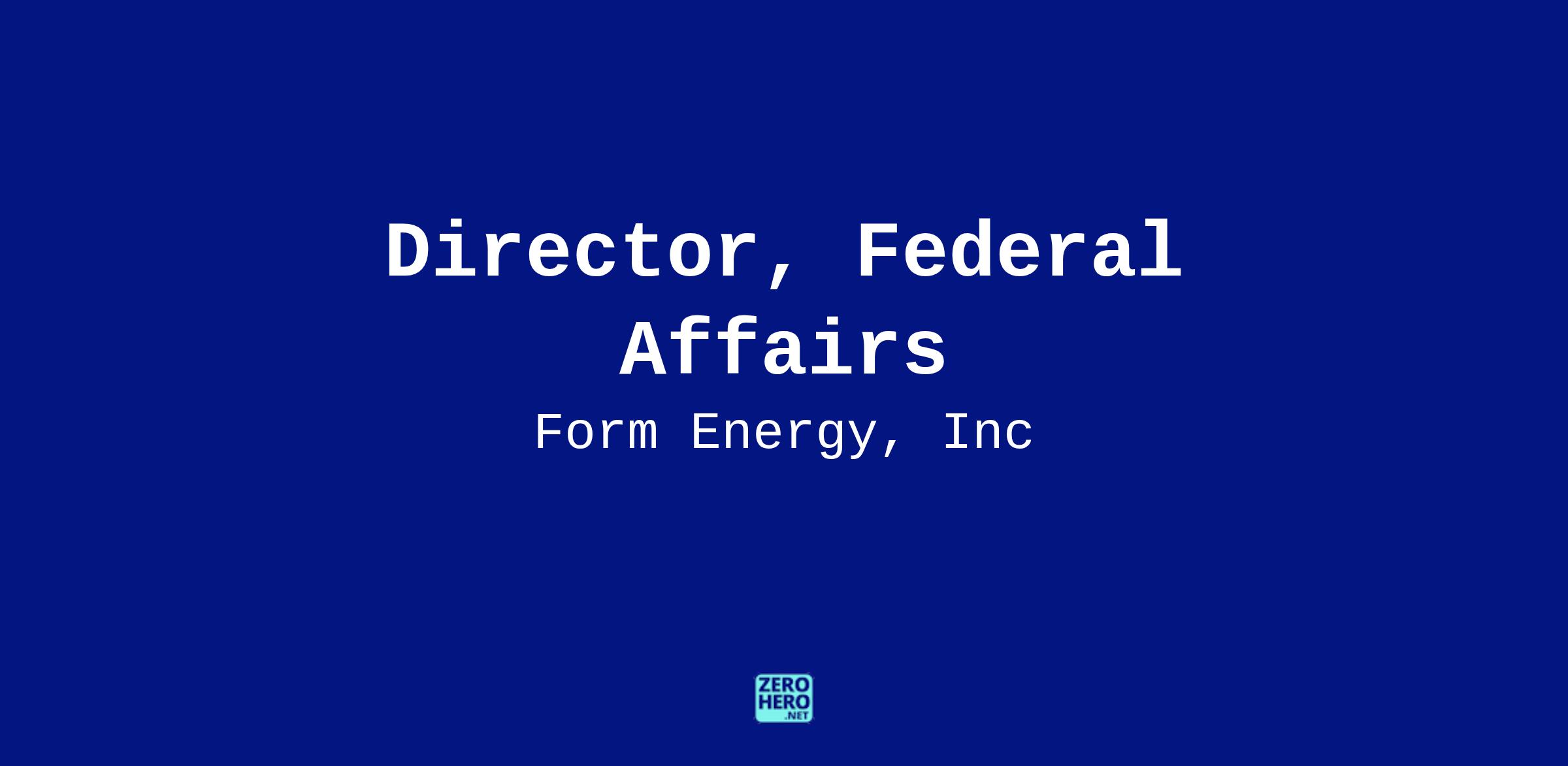 Form Energy is seeking a strategic, driven, and highly experienced Director of Federal Affairs to lead our engagement with the U.S. federal government. In this pivotal role, you will shape and execute our federal policy agenda to support Form Energy’s mission to transform the electric grid. You will be responsible for building and maintaining high-impact relationships with the U.S. Department of Energy and other federal agencies, Congress, and key partners, while delivering measurable policy outcomes that advance our business and regulatory objectives.