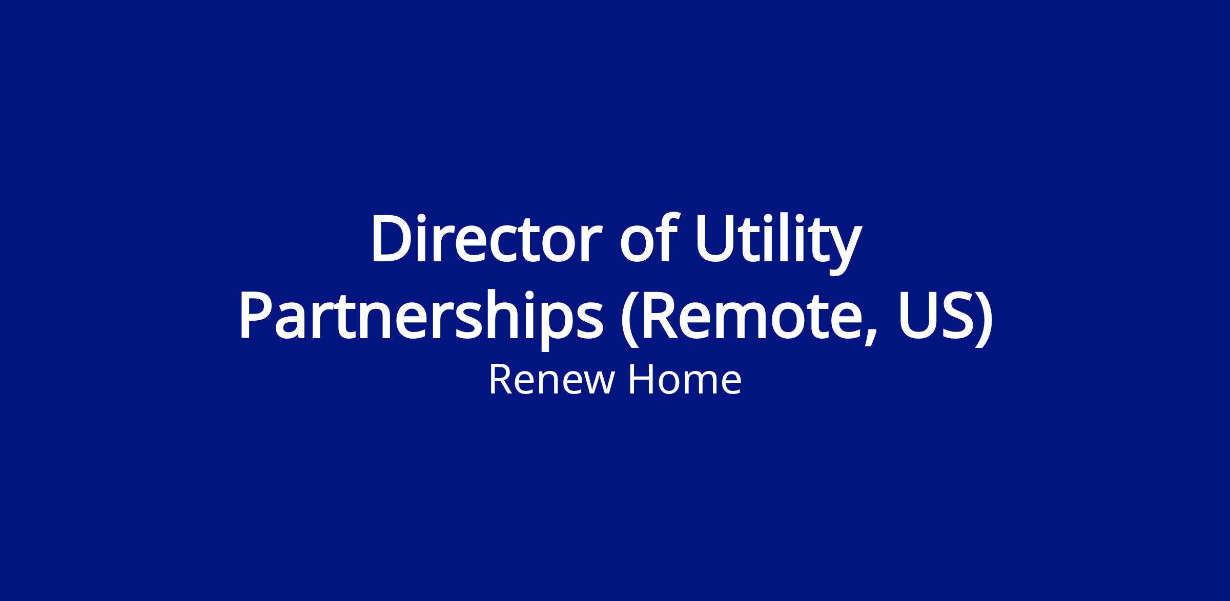 Renew Home is seeking a Sales Director, Utility Partnerships, to drive new business growth with utilities across North America. This is an individual contributor role designed for a proven dealmaker who thrives in complex enterprise sales environments and knows how to turn emerging markets into closed contracts. The role involves regular travel (approximately 25% or more) to engage directly with utility partners, attend industry events, and build relationships across the energy ecosystem.
