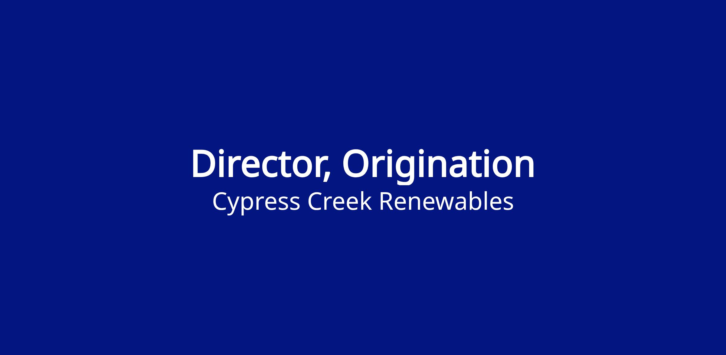 Cypress Creek Renewables is powering a sustainable future, one project at a time. We develop, finance, own and operate utility-scale and distributed solar and storage projects across the country. Fostering a diverse group of innovative thinkers from all backgrounds, Cypress people are drawn to work in a purpose-driven organization. We hope you will join us.