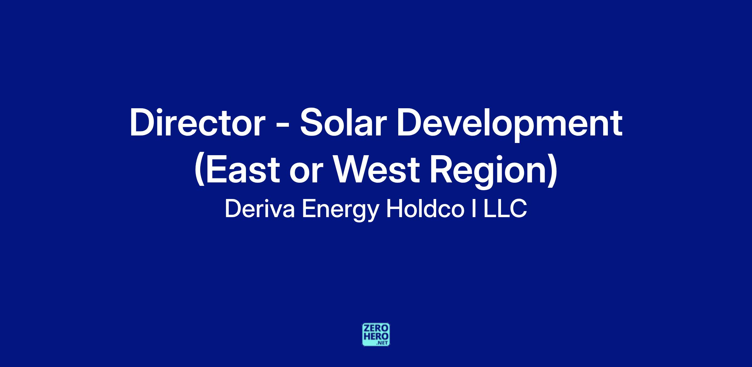 Reporting to the Senior Director of Development, the Director Solar Development will manage and lead the Solar and Hybrid Solar+Storage Development team to deliver renewable and storage investment opportunities across the East or West region. The Director will manage a growing pipeline of projects, with a focus on advancing and delivering >3 GW of existing mid and late-stage projects in the region. This role is best suited for an experienced developer with demonstrated results leading a team and bringing projects to construction handover. Working in concert with internal and external experts, responsibilities include project management, landowner and community relations, obtaining land use permits, shepherding projects through high-profile interconnection decision points, and finalizing offtake contracts, GIAs, and EPC agreements to carry a project through final investment decisions and ultimately to NTP. Deriva is a leader in facilitating a rapid and sustainable energy transition by developing high-quality renewable energy projects, fostering community partnerships, while being a responsible corporate citizen and a trusted energy solutions partner. We have ambitious growth goals and are expanding the team to support this growth.