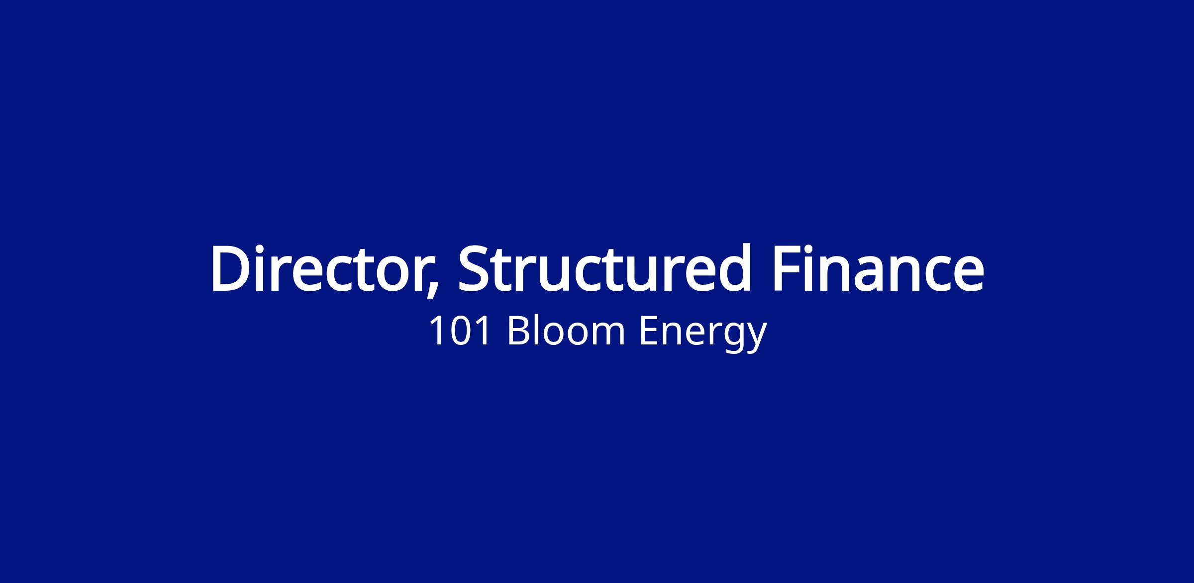 We are looking for a Director, Structured Finance to join our team in one of today’s most exciting technologies. This role will report to VP, Project Finance and based in San Jose, CA and will require some travel (10% - 20%). This is a fully on-site, in office role.
