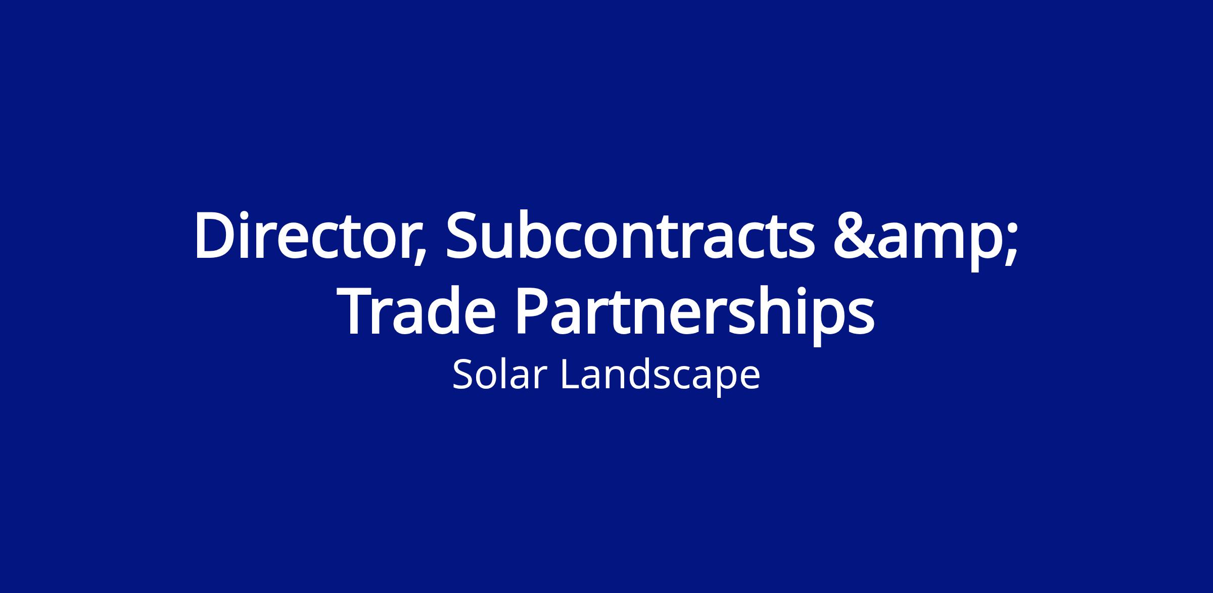 The Director, Subcontracts & Trade Partnerships is a senior leader responsible for building, sustaining, and scaling long-term subcontractor partnerships that enable the company’s commercial and industrial (C&I) rooftop solar development and EPC growth strategy.