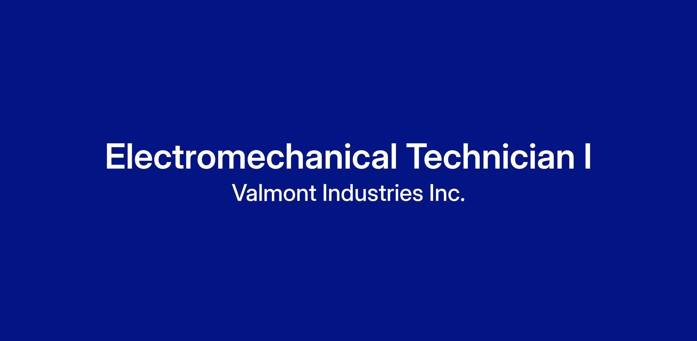 At Valmont, we don’t just hire technicians — we rely on them to keep the systems running that support the world’s critical infrastructure. As an Electromechanical Technician I, your work helps power energy grids, advance smart agriculture, and connect communities. You’re the one who keeps the machines moving — and we make sure your work never goes unnoticed.