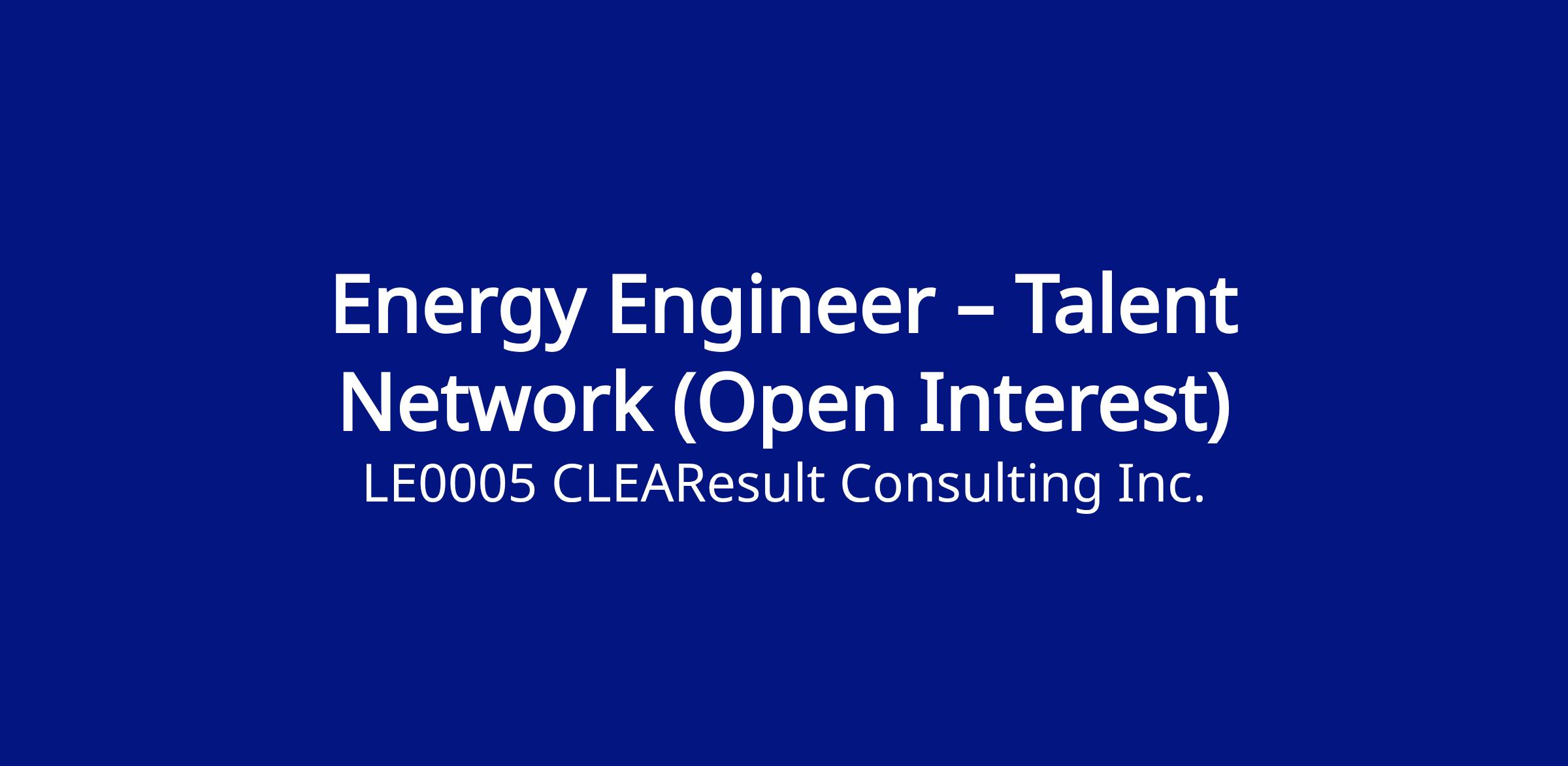 Ready to launch your engineering career and make a real impact on energy efficiency? Thank you for your interest in CLEAResult’s mission to change the way people use energy! We’re building a network of early-career engineers who want to grow their skills and be first in line for exciting opportunities that shape a sustainable future.