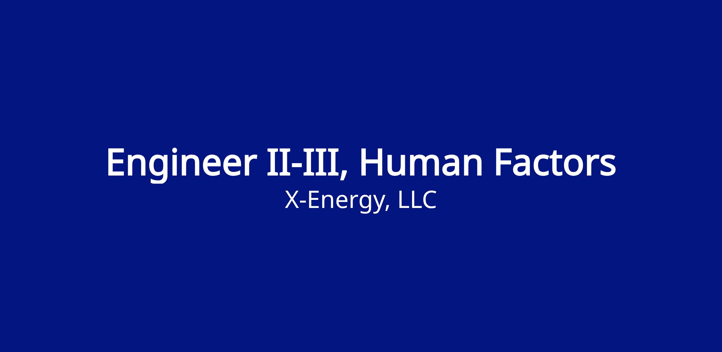 This role is responsible for supporting design, development, and implementation of Human Factors (HF) methods for a generation IV nuclear reactor. They will perform research and development in human performance for highly automated systems. The role will be responsible for planning and conducting verifications and validations, executing risk management strategies, and applying the latest HF principles to improve the design of human-system interfaces. They will collaborate with multiple engineering disciplines within cross-functional teams, while advocating for the best possible human factors engineering outcomes.