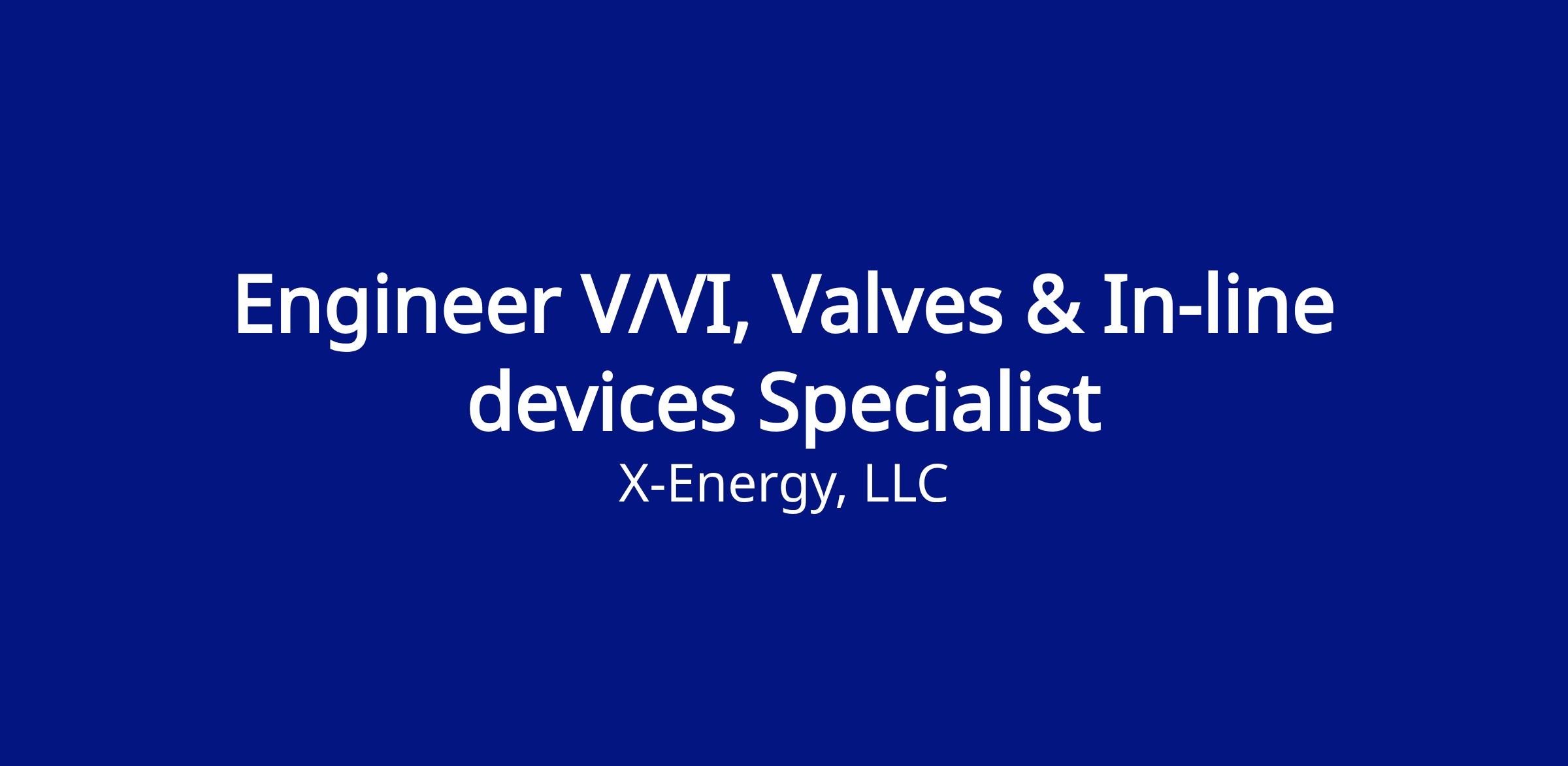 Author and maintain X-energy design standards and guides related to design, specification, and selection of valves.