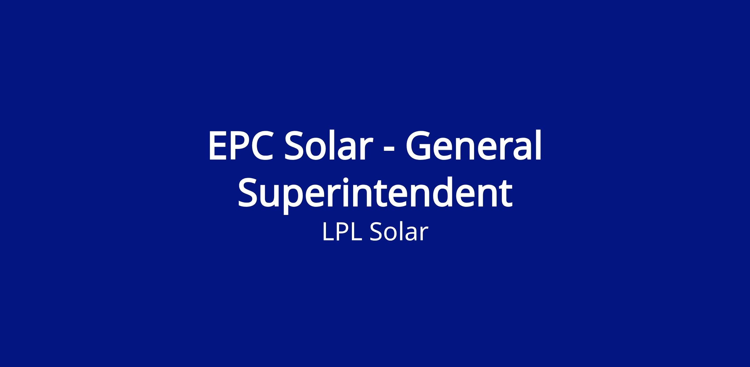 - Proven experience as a General Superintendent in the EPC Utility Scale Solar industry.