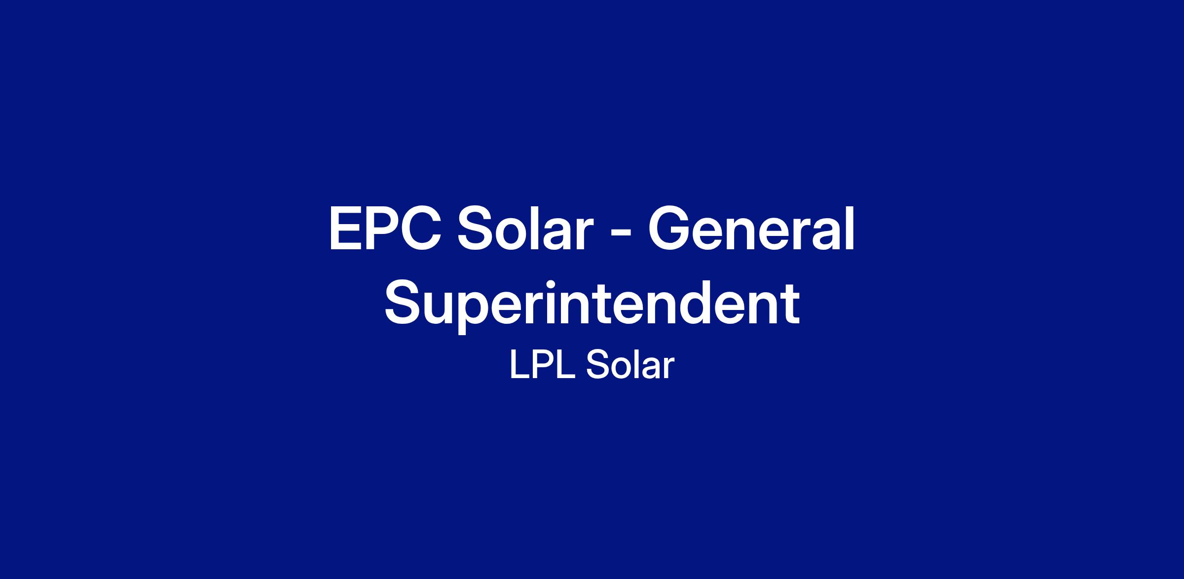 - Proven experience as a General Superintendent in the EPC Utility Scale Solar industry.